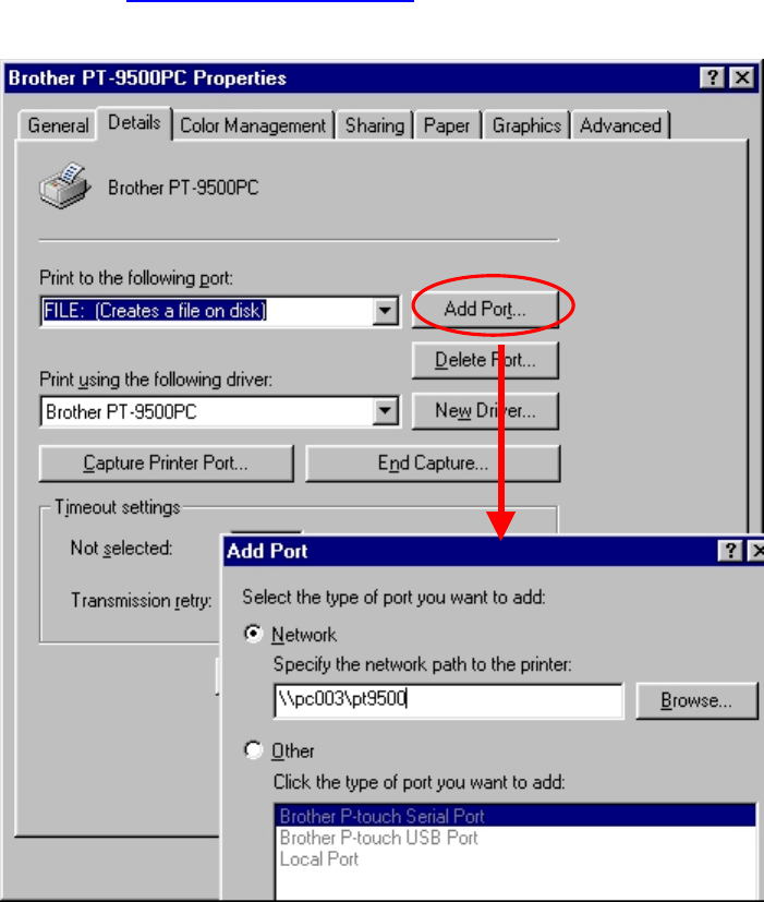 Click the Details tab, and then click the Add Port button to display the Add Port dialog box.