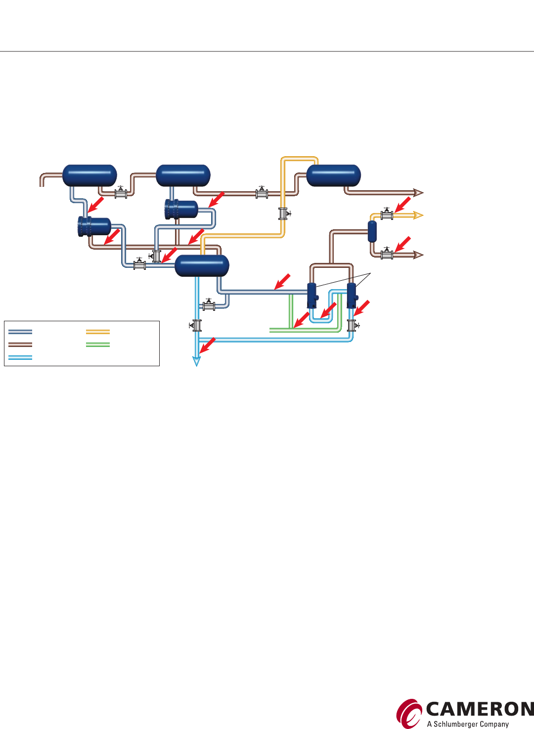 from the tuning process, optimizing efficiency and mitigating HSErisks. Red arrows show where in the produced water and sand management system the