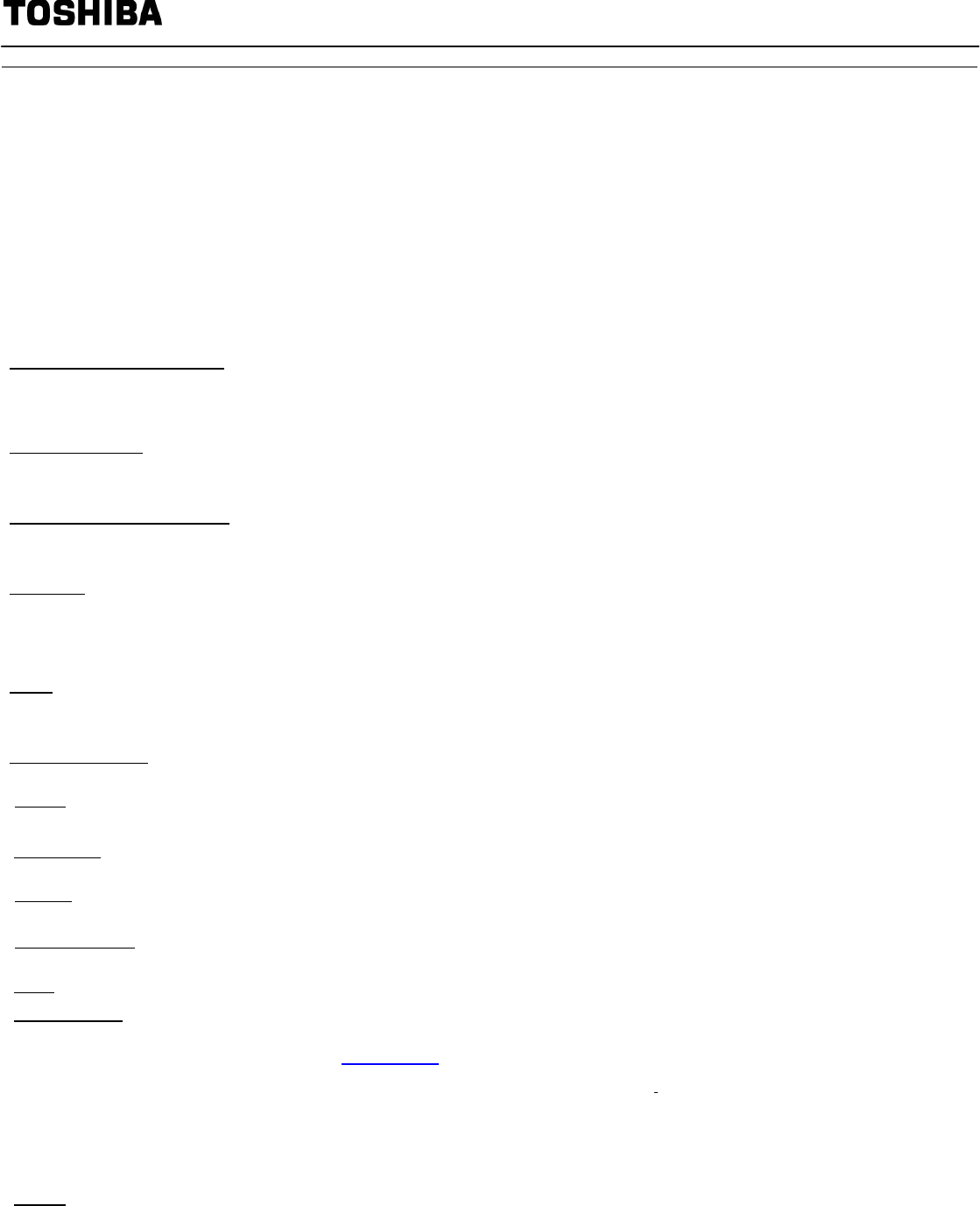 20 Warranty. The terms and conditions of Toshiba’s standard limited warranty are available at www.warranty.toshiba.com.