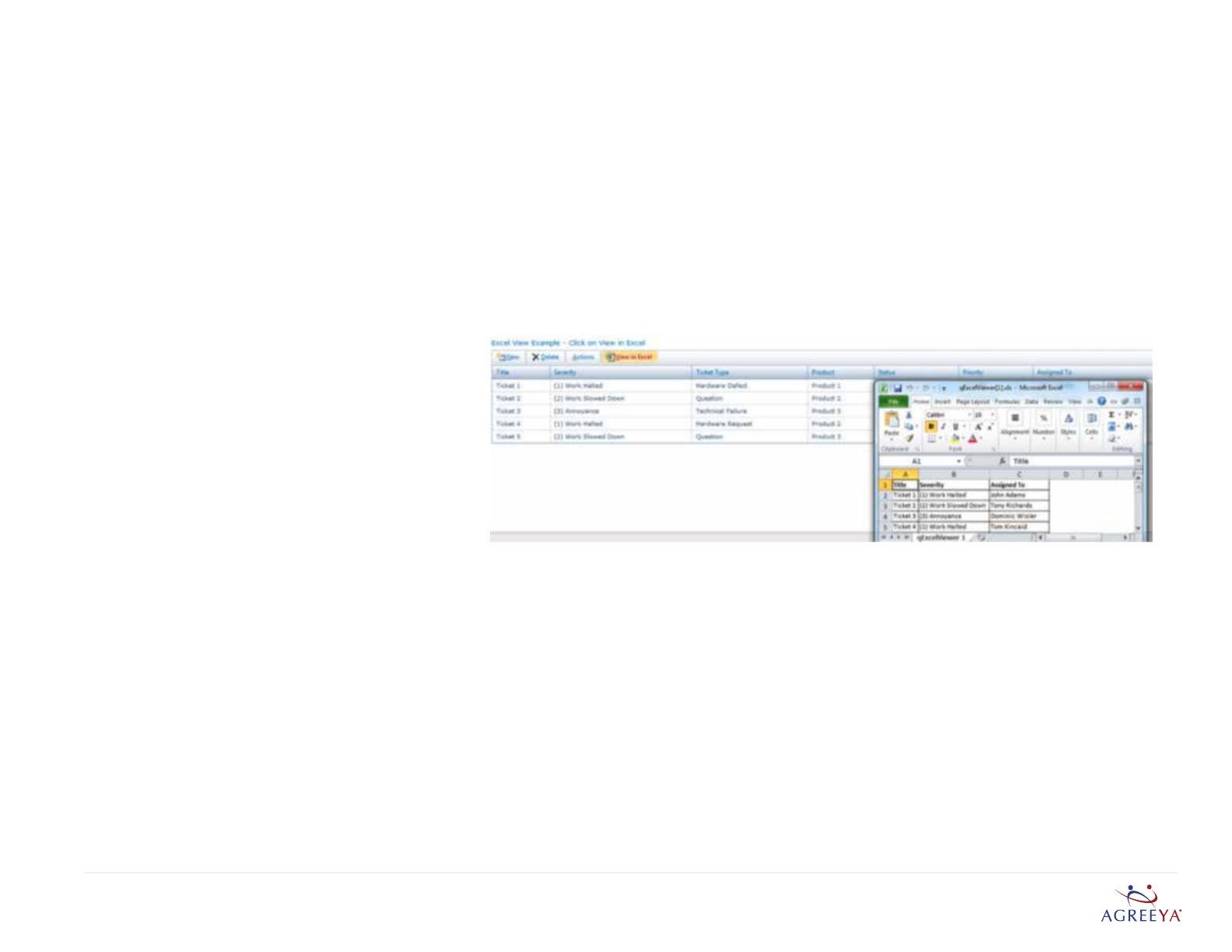 • Export list view data into Microsoft Word, Microsoft Excel, PDF or CSV formats