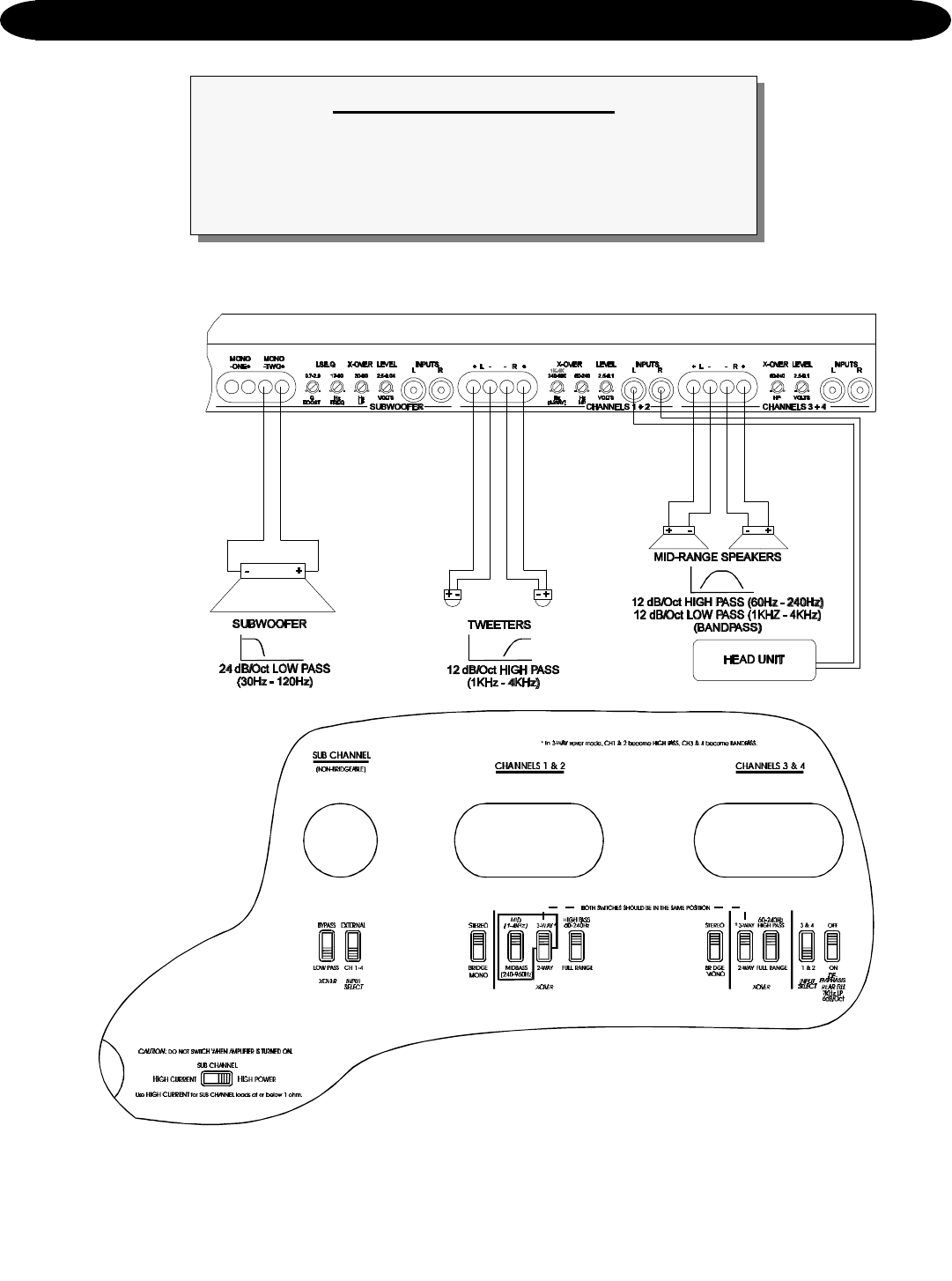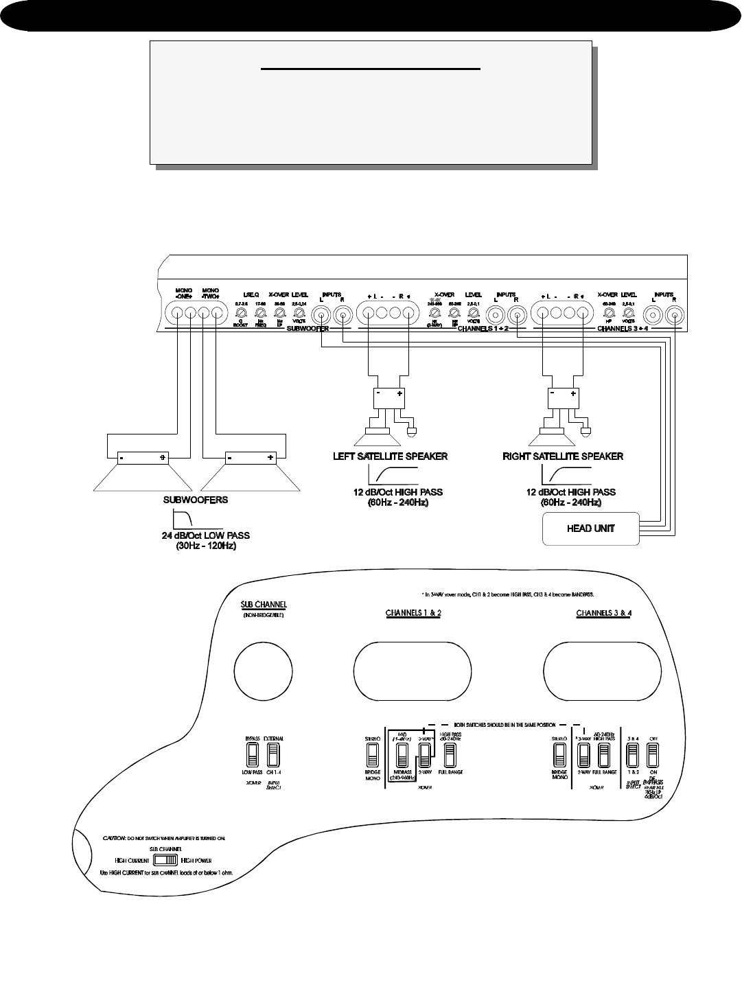 nels of input •check input settings on bottom of amplifier—