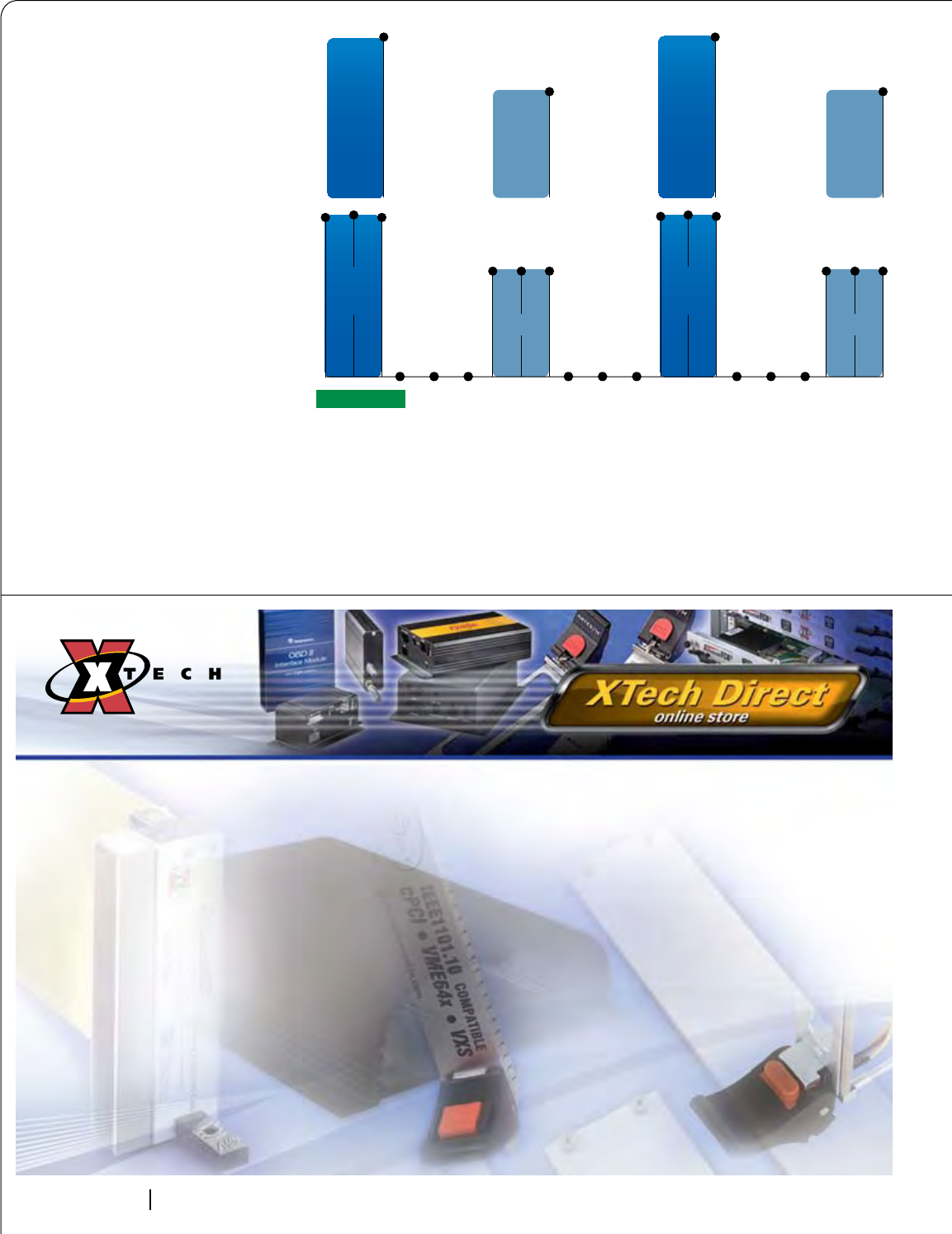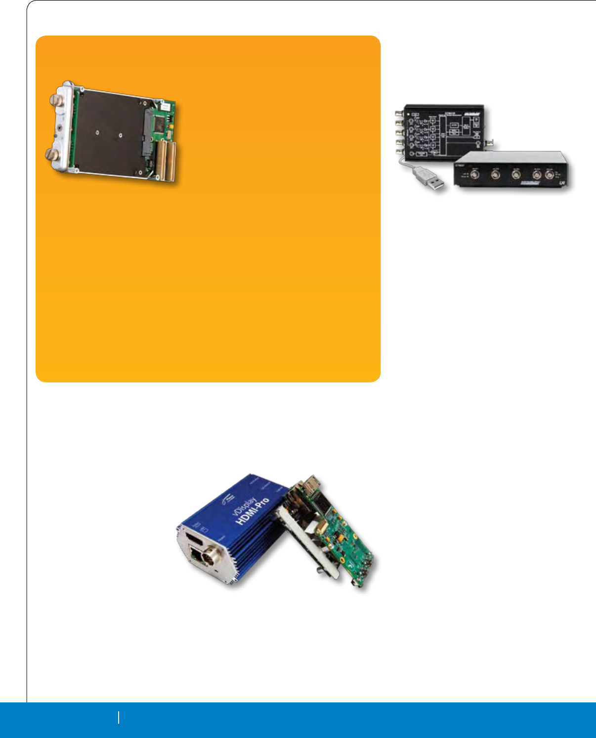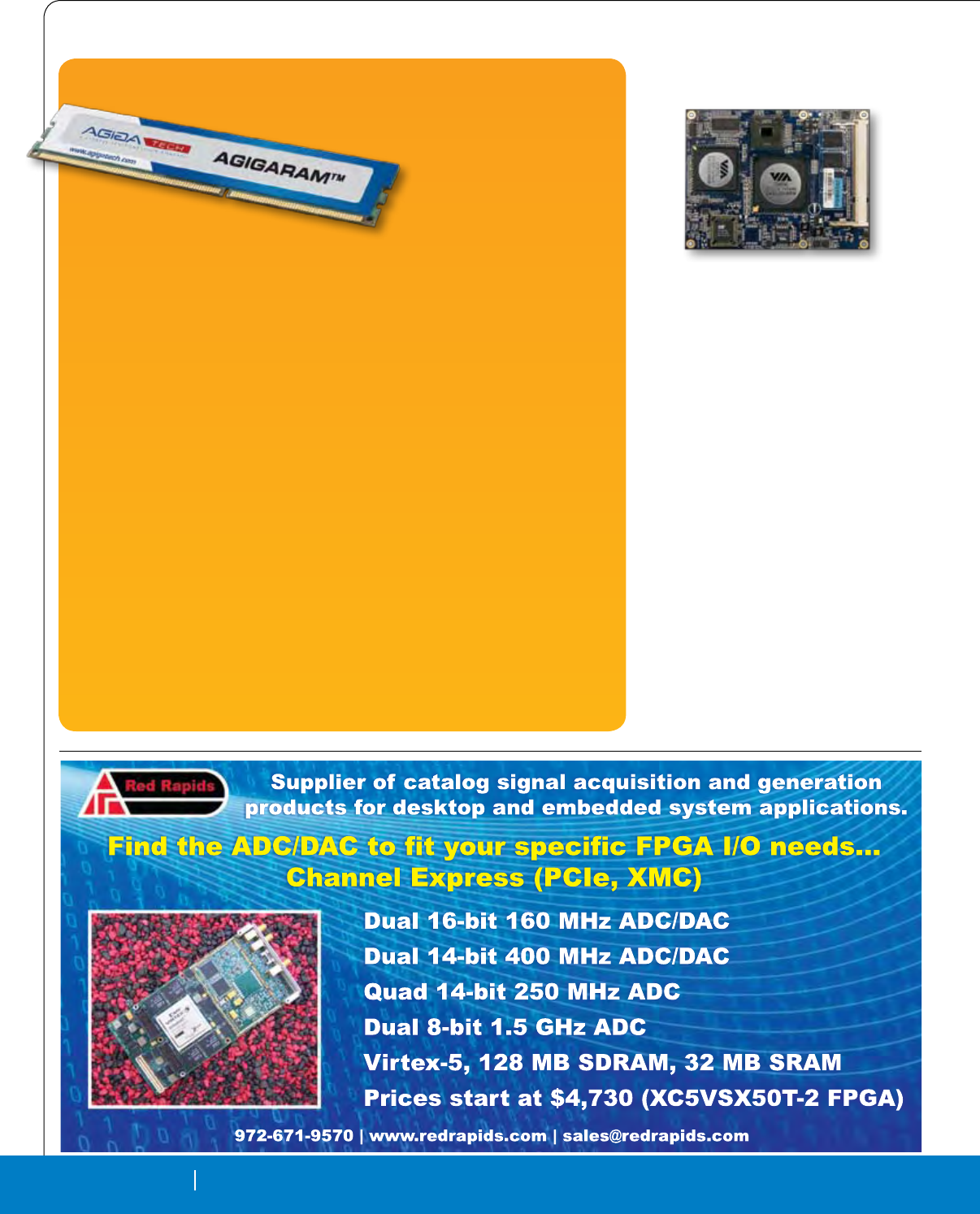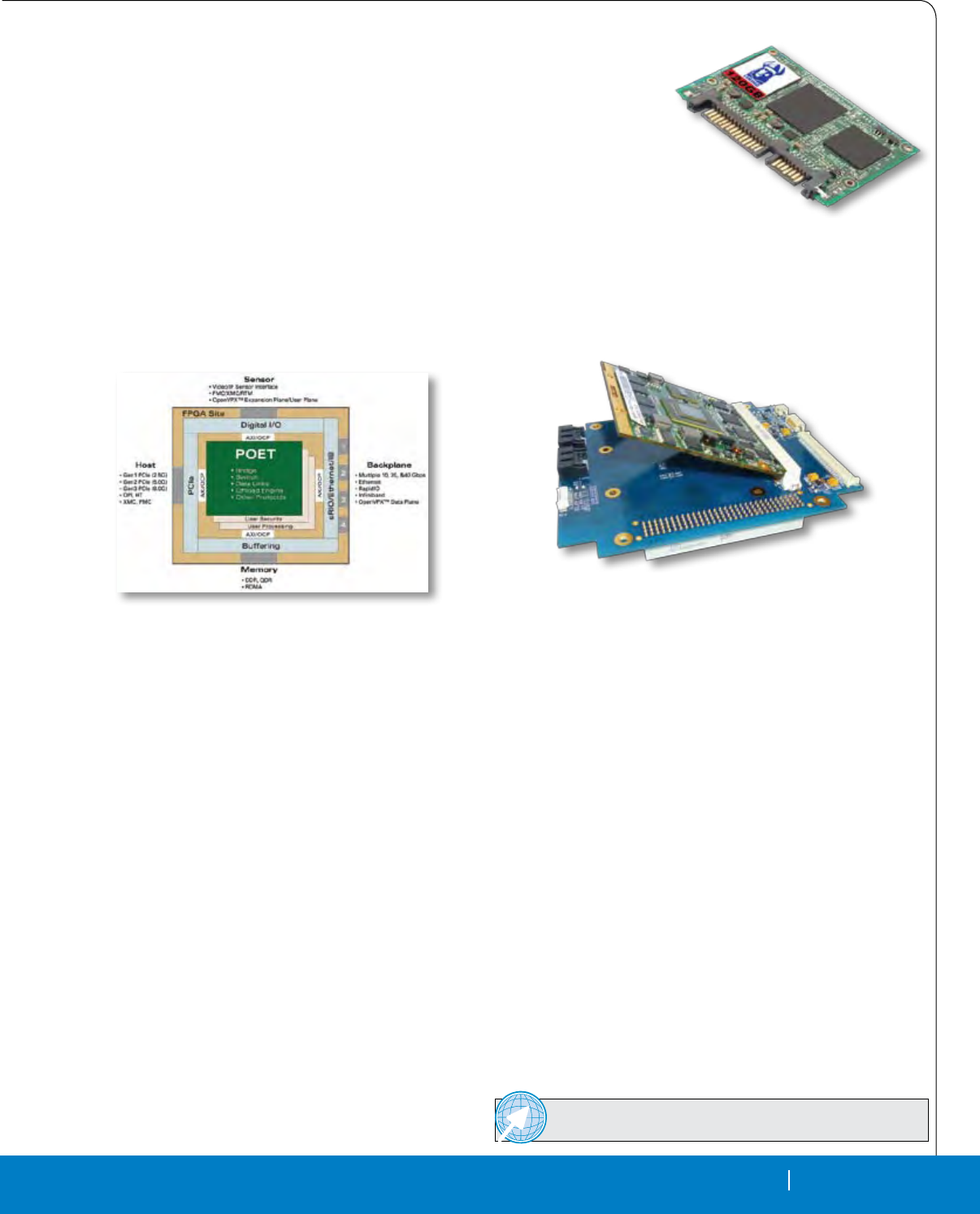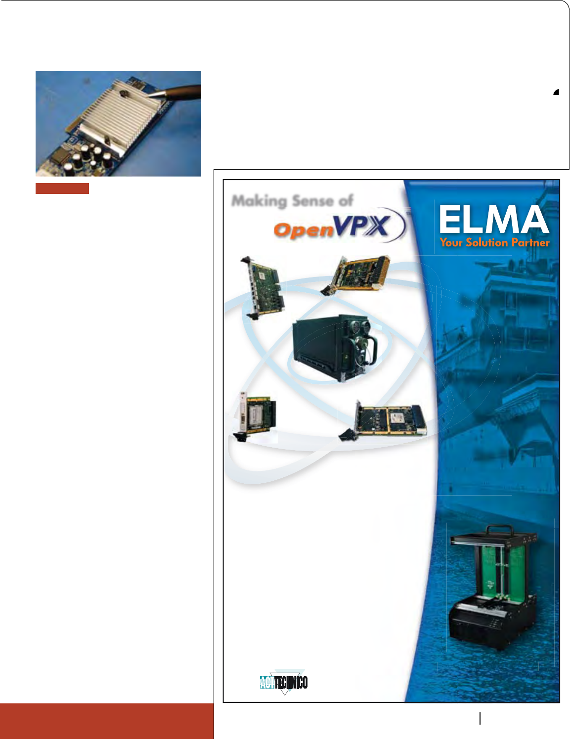 Cover Photo: New Open VPX boards: The Pentek Rugged Quad 200 MHz, 16-bit A/D with Virtex-5 FPGAs 3U VPX Module, the Elma T4340 6U OpenVPX switch and the