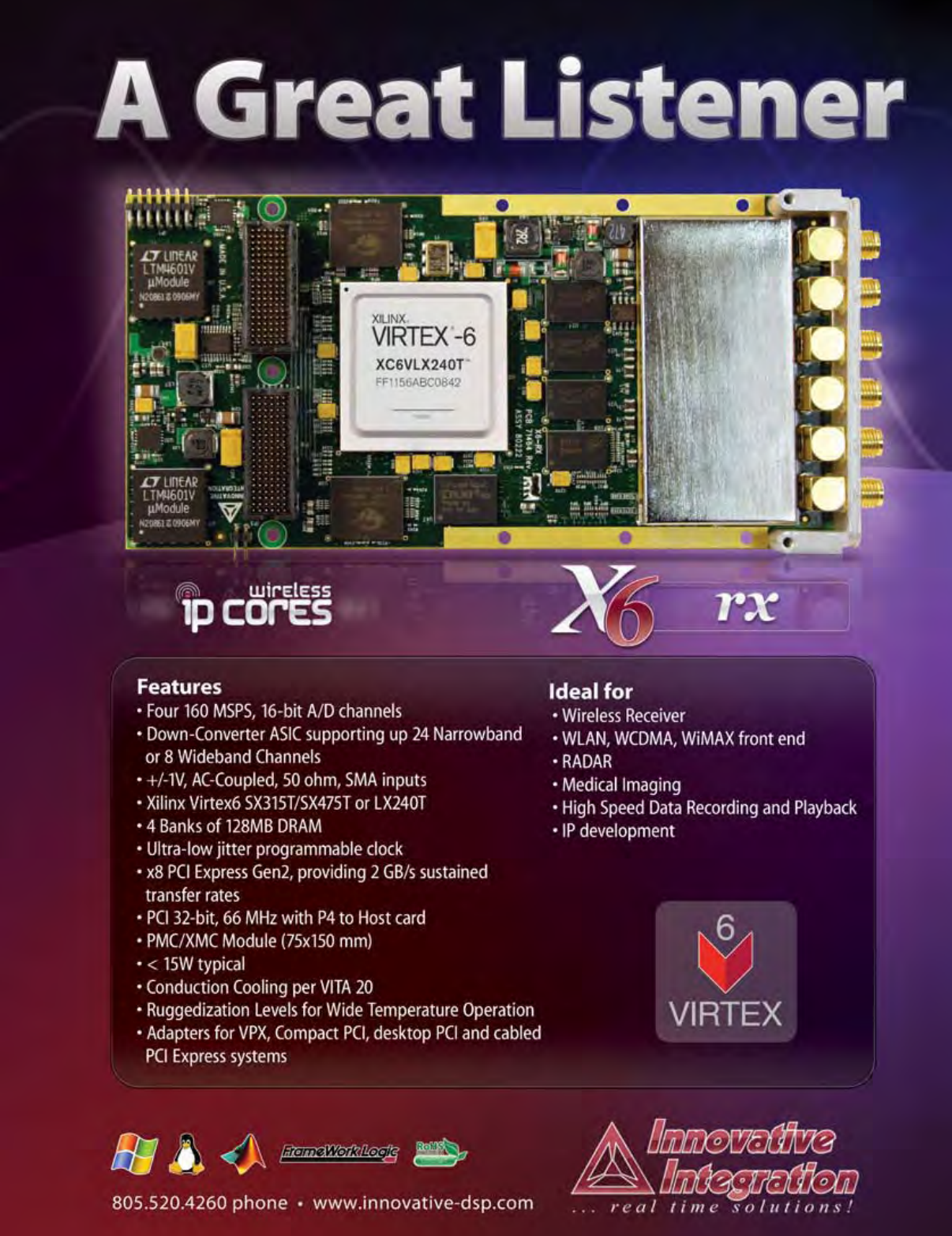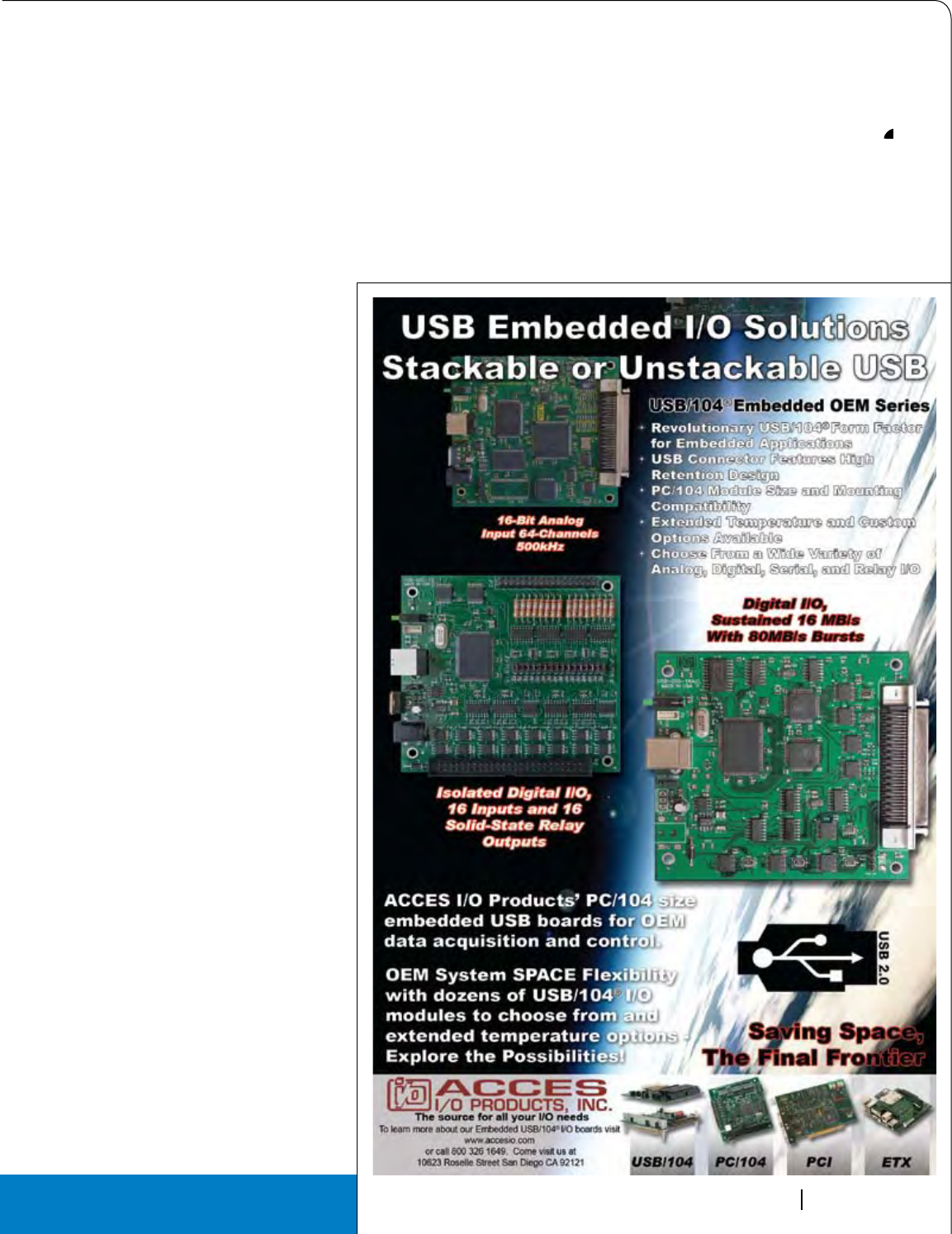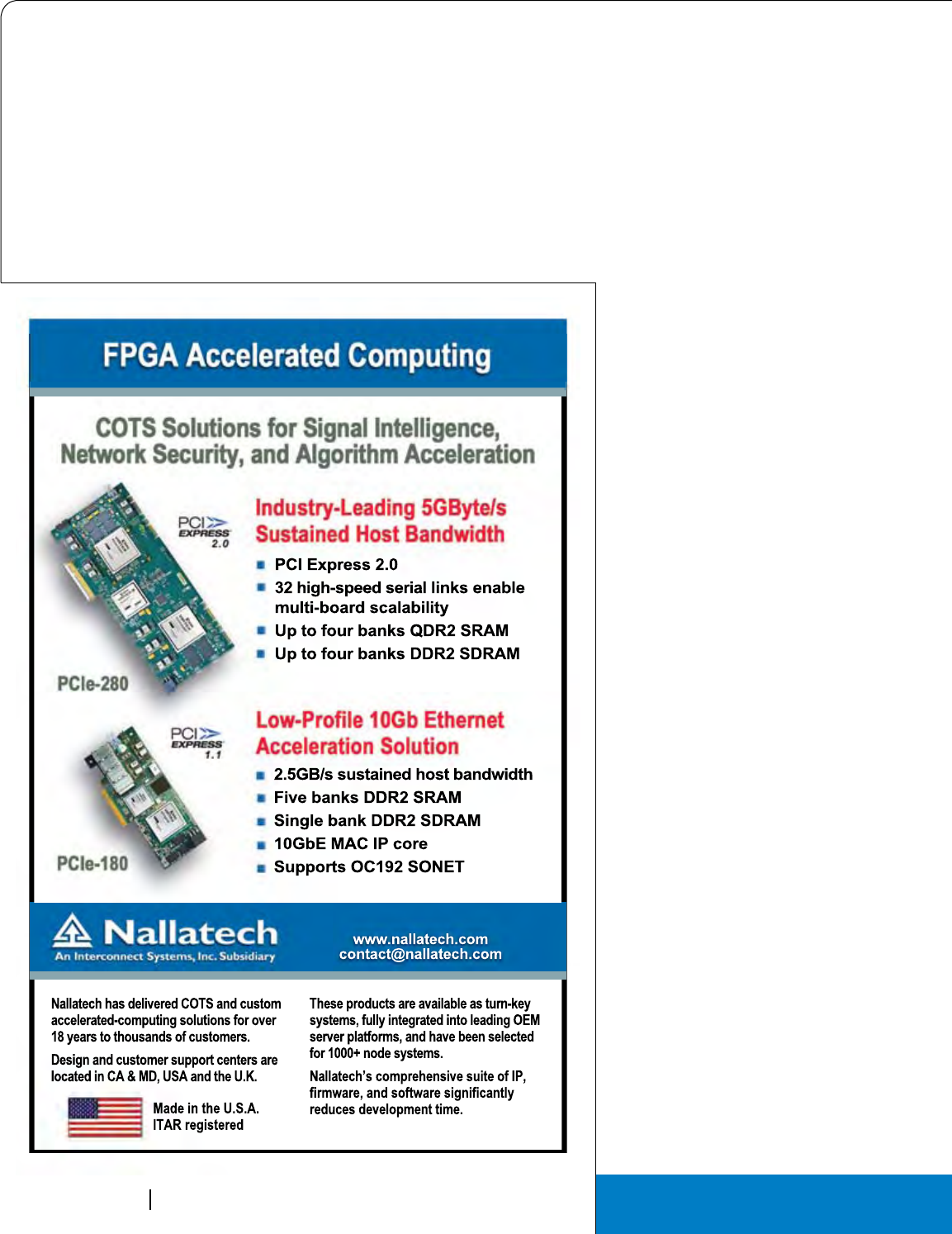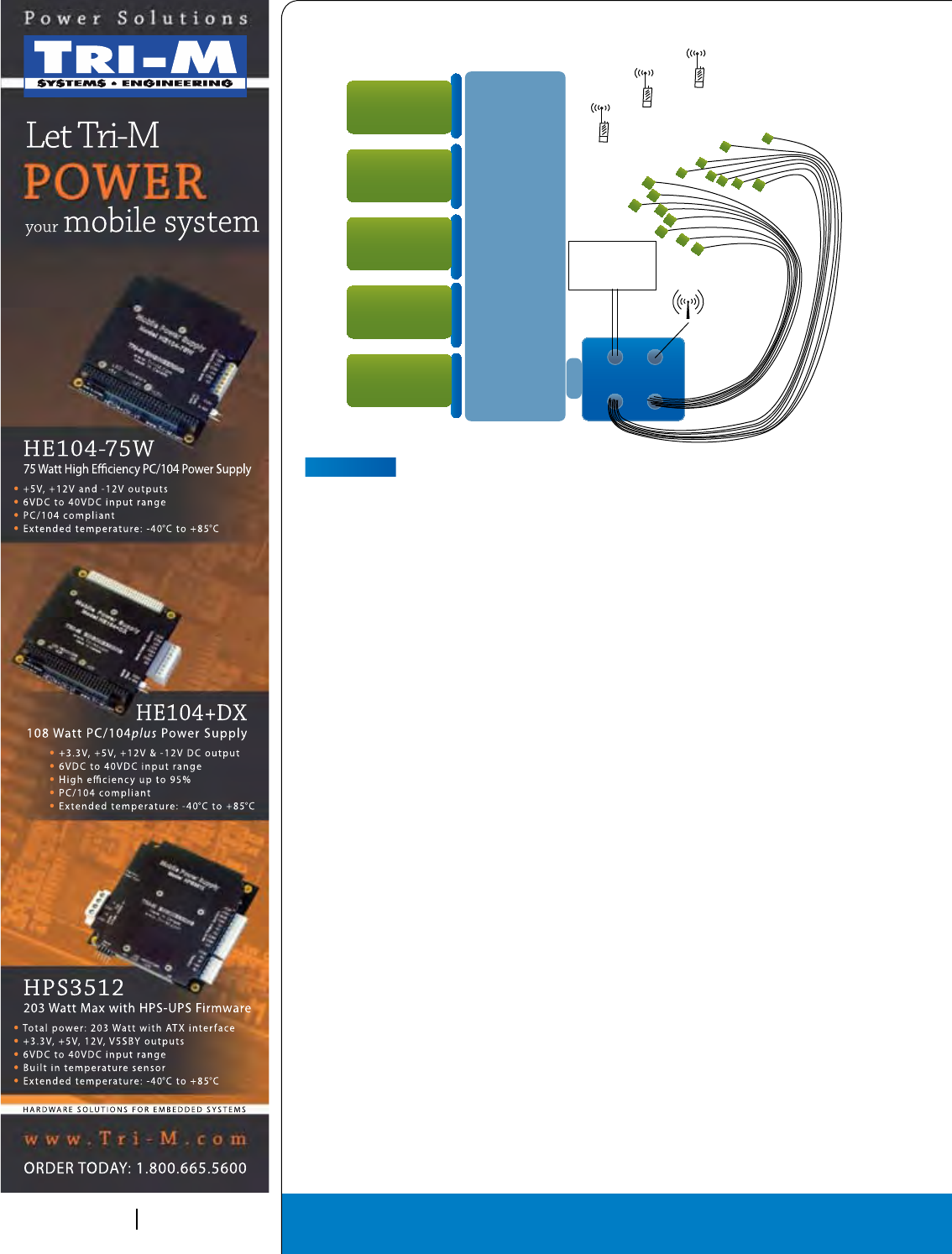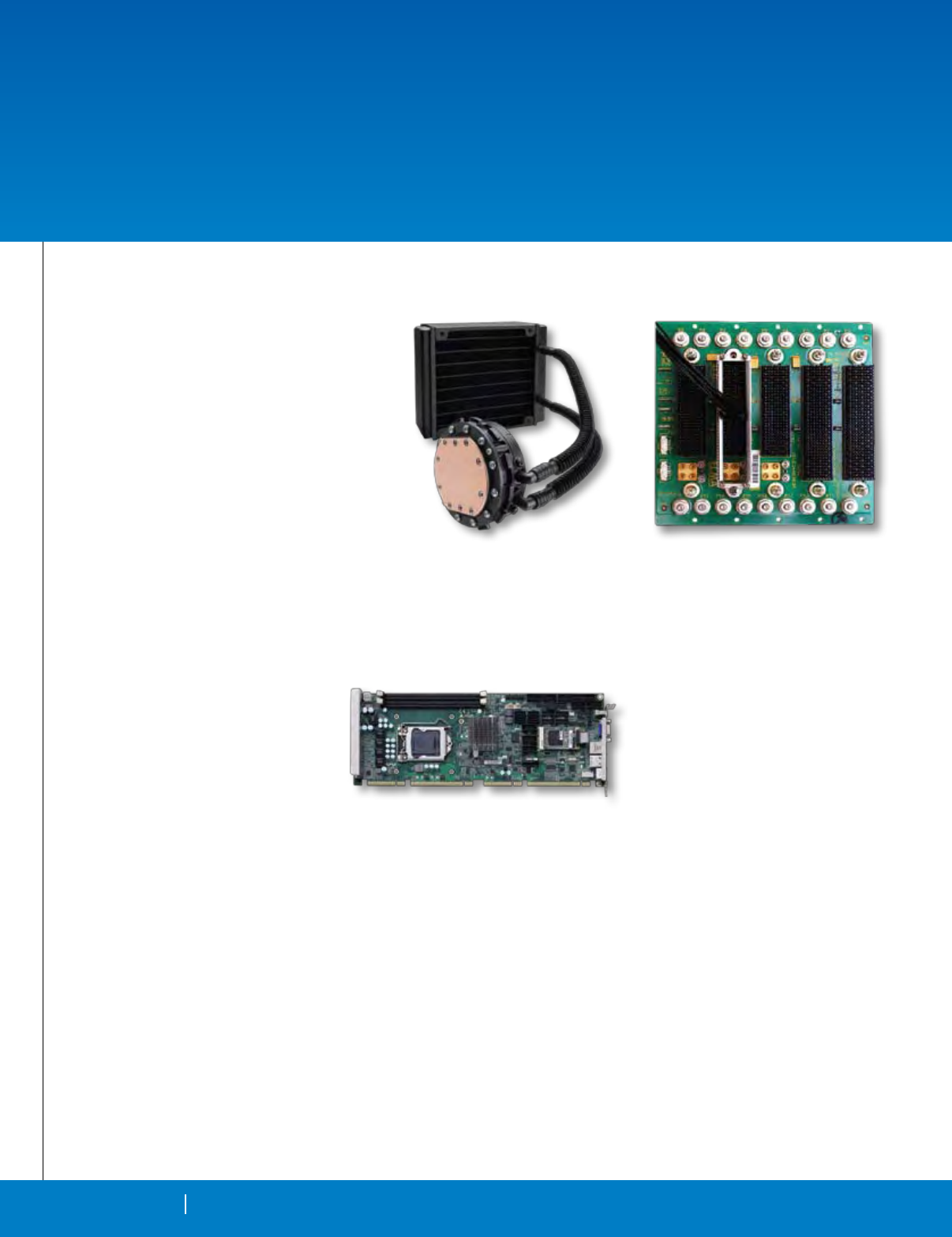 Cover Photo: New Open VPX boards: The Pentek Rugged Quad 200 MHz, 16-bit A/D with Virtex-5 FPGAs 3U VPX Module, the Elma T4340 6U OpenVPX switch and the