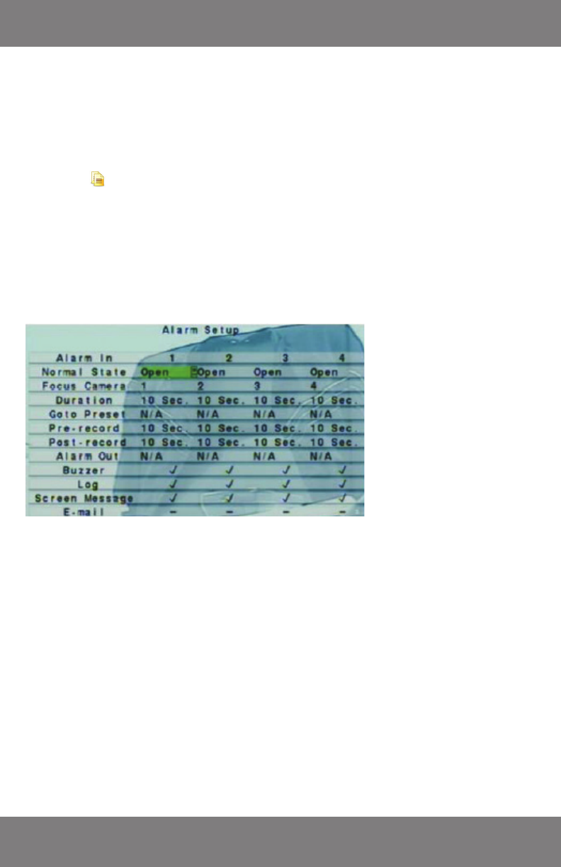 after this alarm input is triggered. However, the Alarm Out relay and the Buzzer will be reset immediately once this