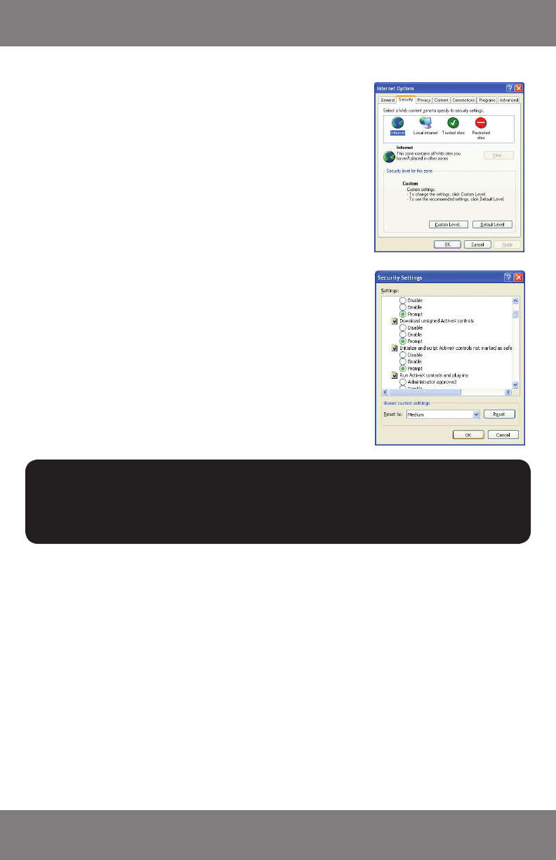• A pop-up blocker is preventing the controls or DVR from showing up.