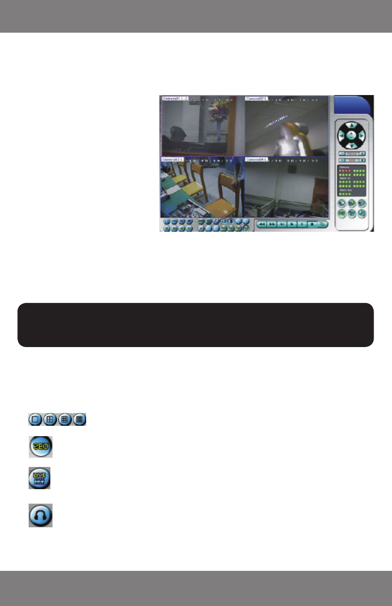 3. - Click on this icon to toggle between live mode and playback mode for all the video windows.