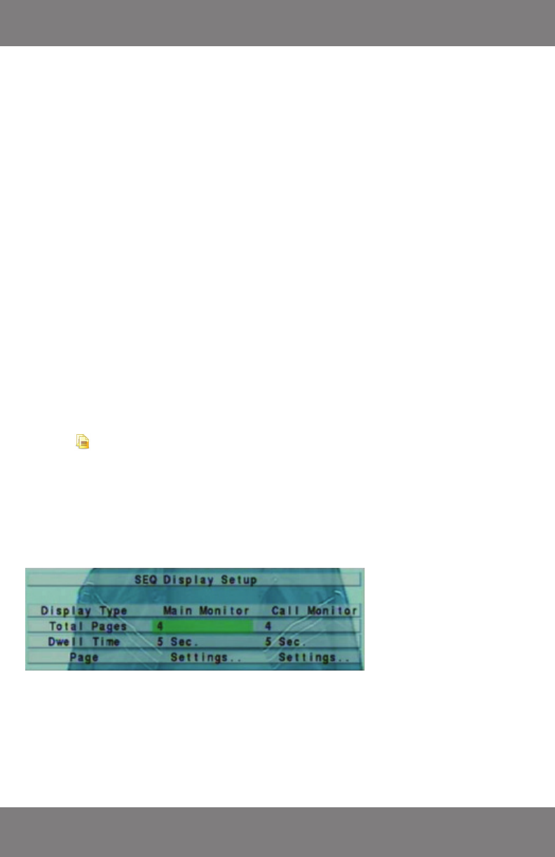 The SEQ Display Setup allows the administrator to dene the display pages while in SEQ Display for main monitor and