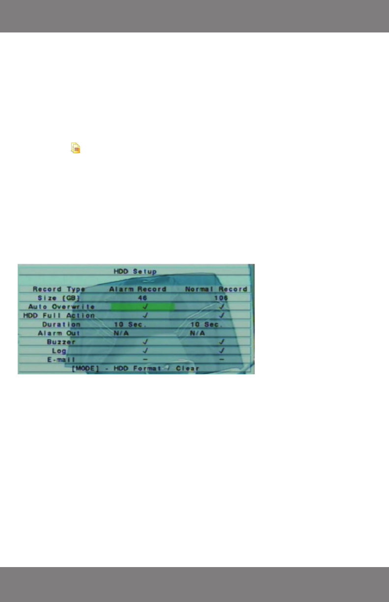 • Screen Message – to display the event message on the screen or not. Press ENTER or +/- to check/uncheck this