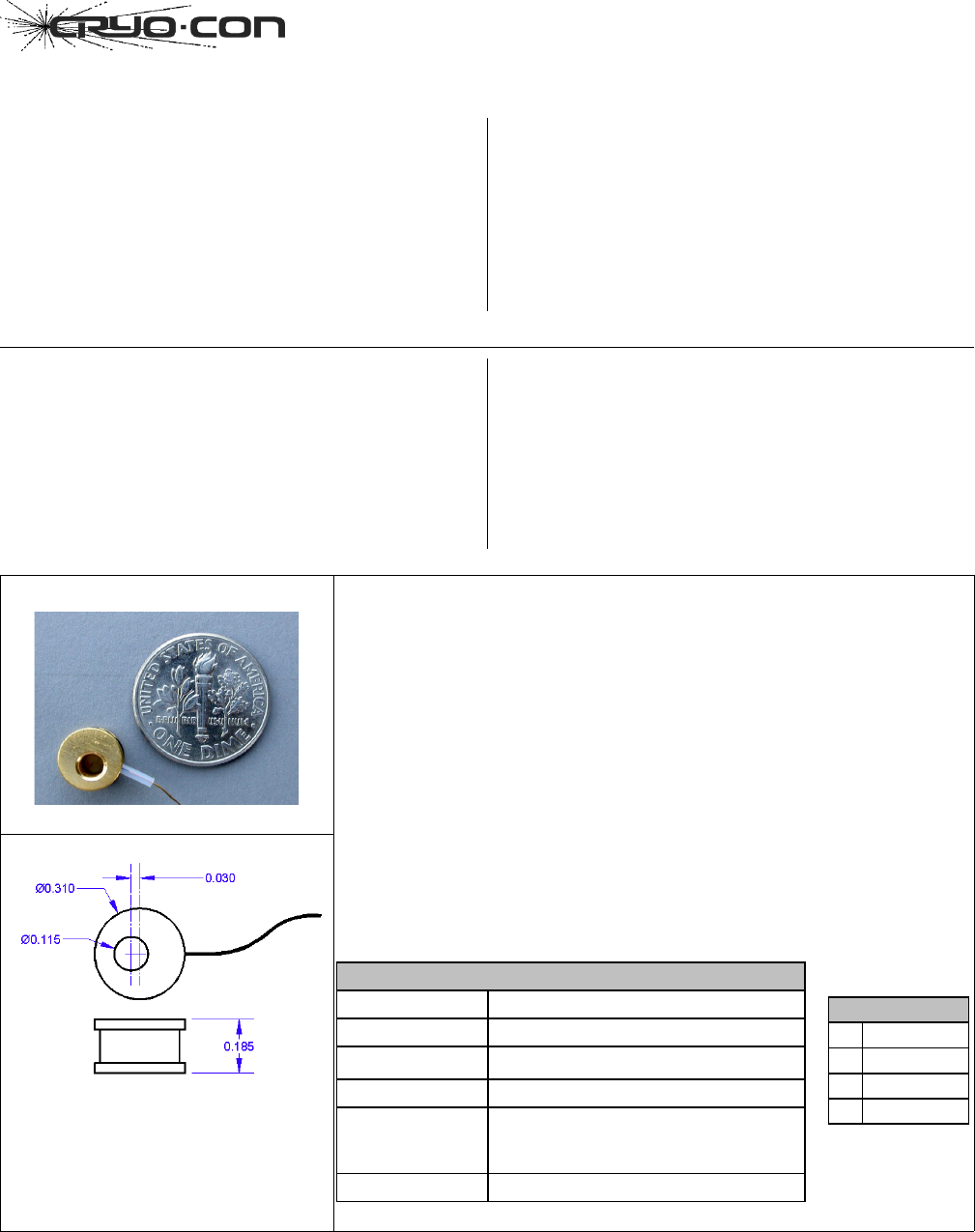 Installation: Connection is made using a four-wire, 36 AWG cryogenic