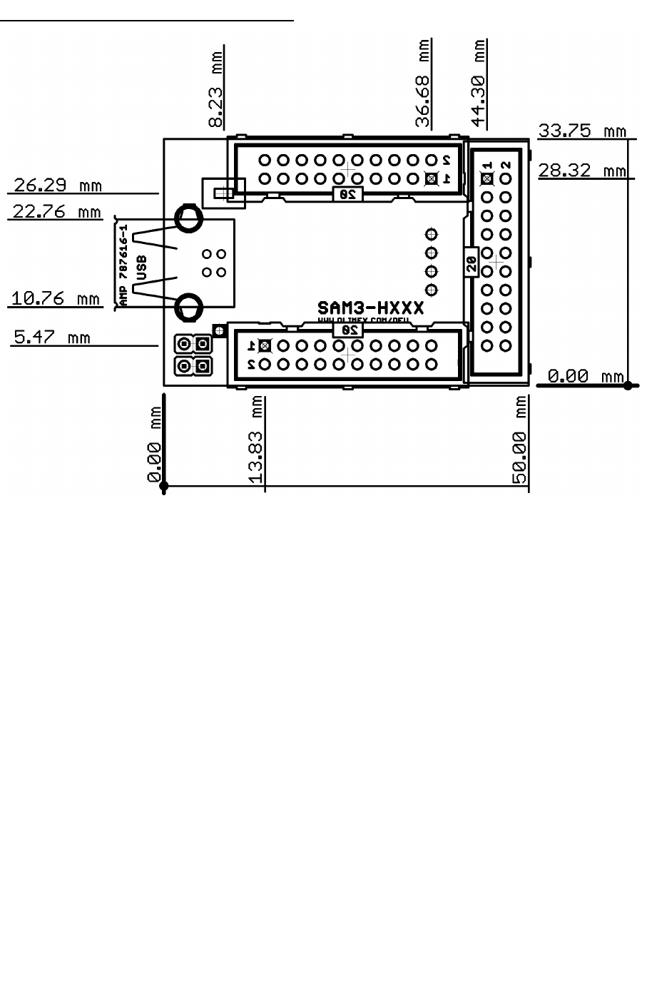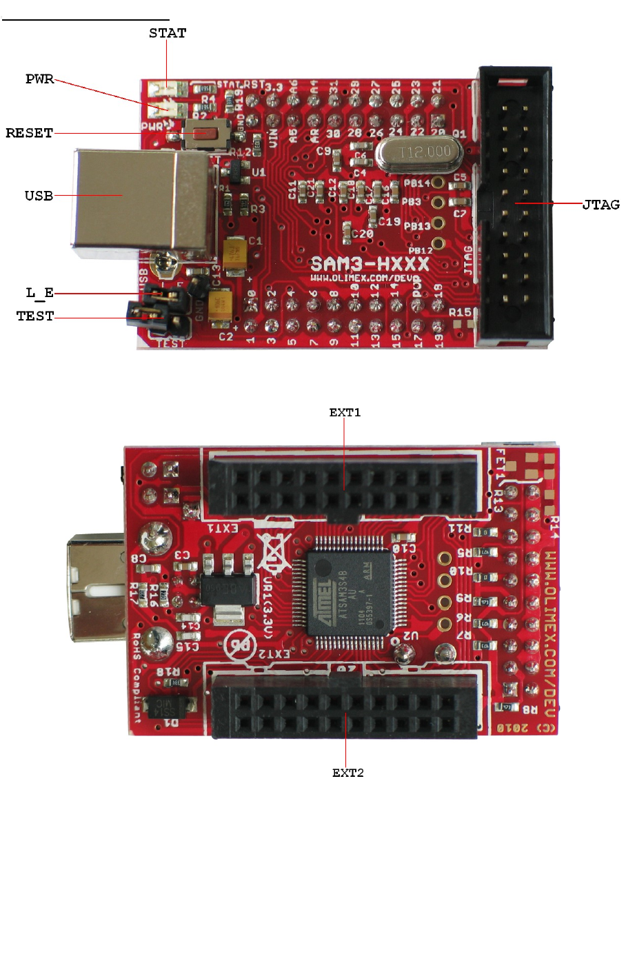 SAM3-H256 has connectors for JTAG and USB, extension headers for all