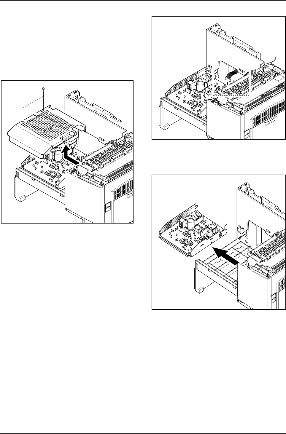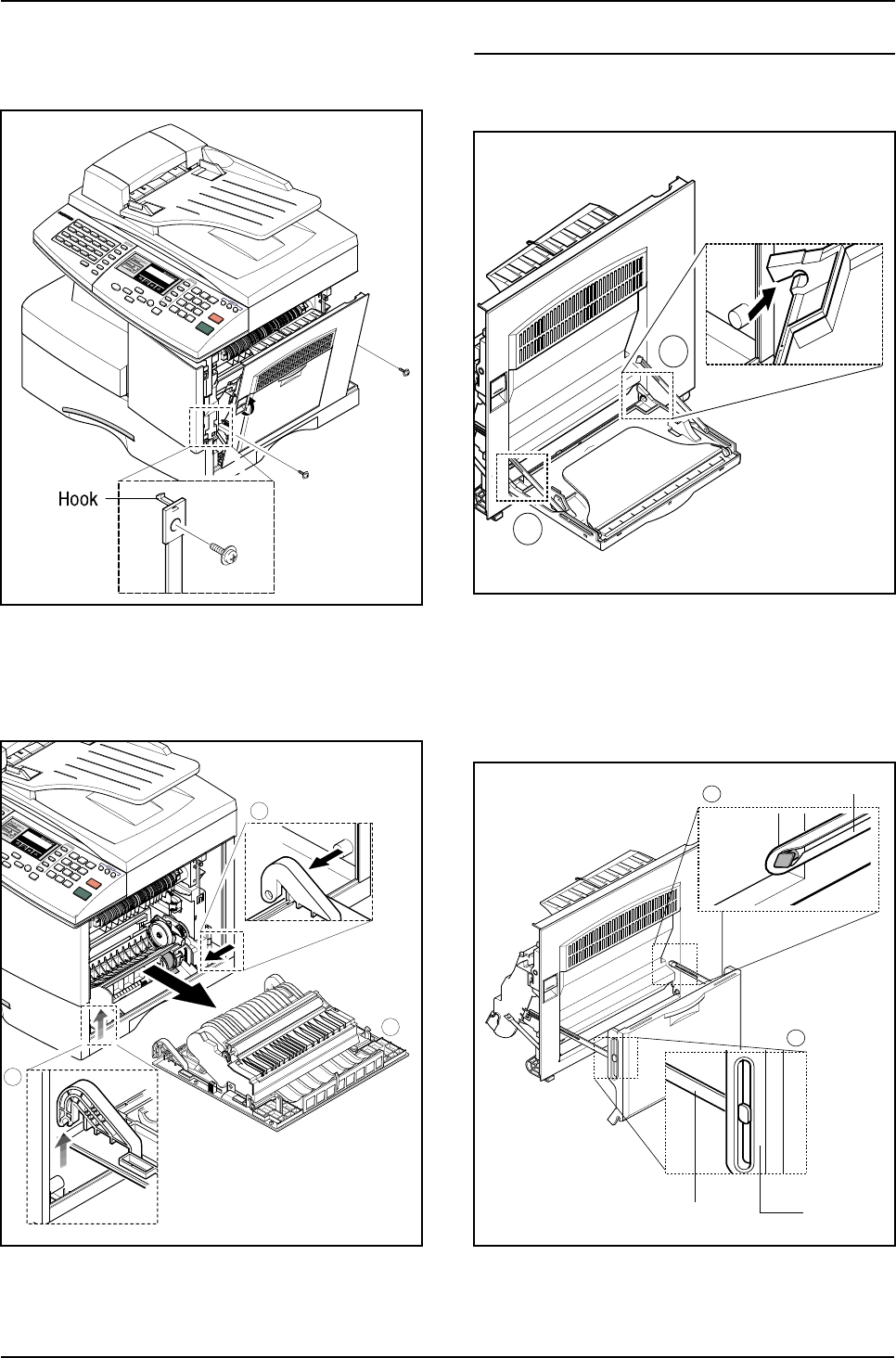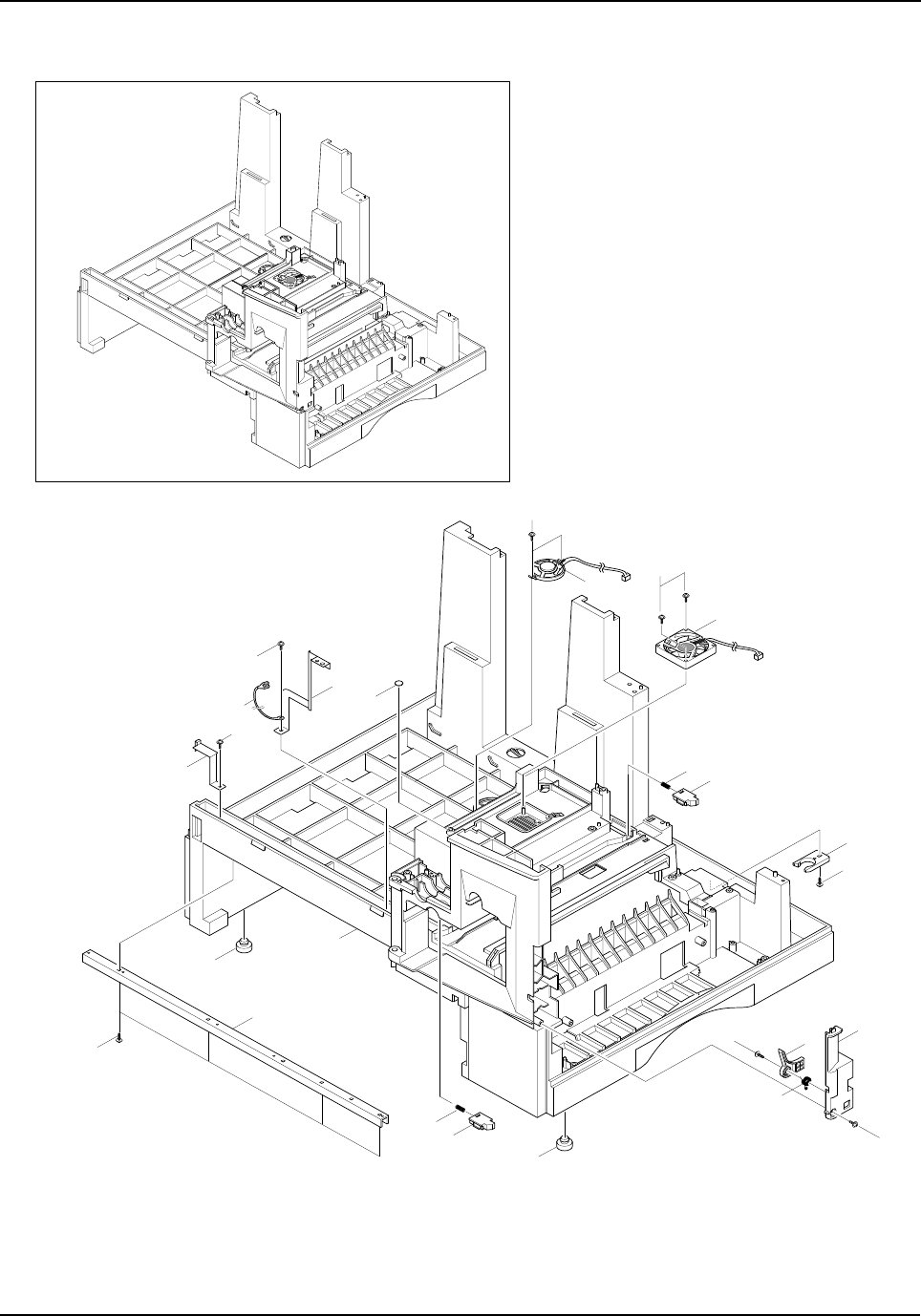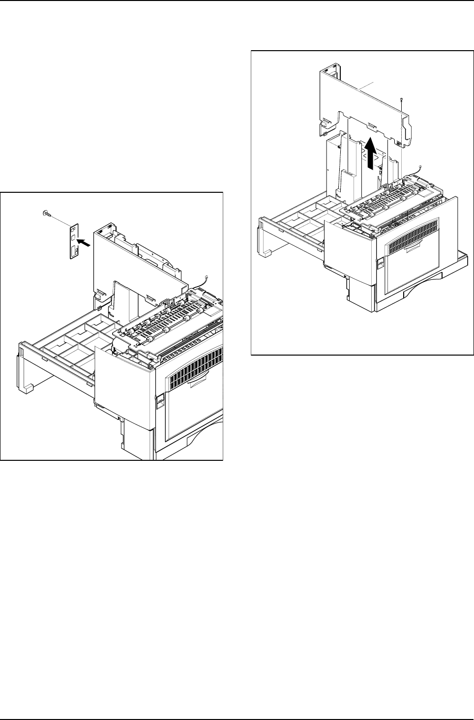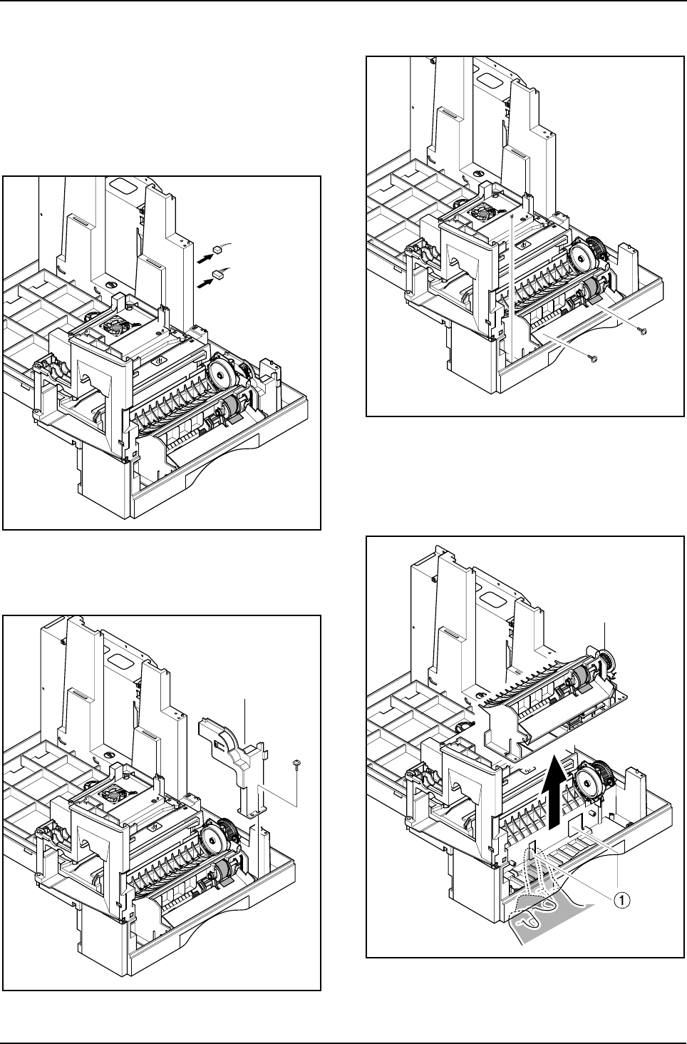 1. Remove the paper cassette and toner cartridge.