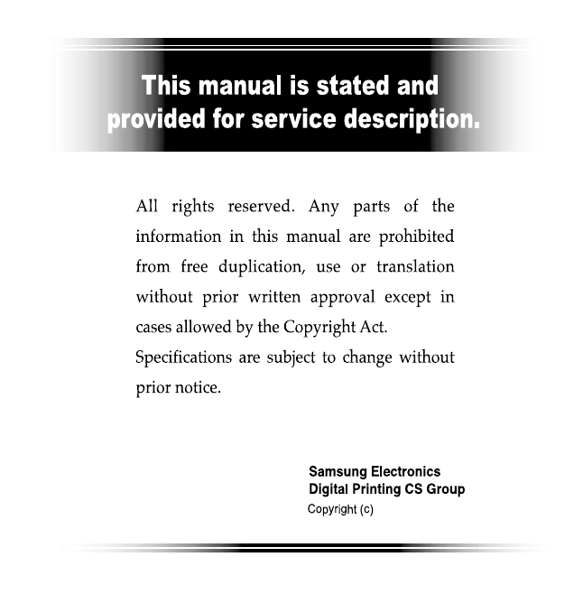 This Service Manual is a property of Samsung Electronics