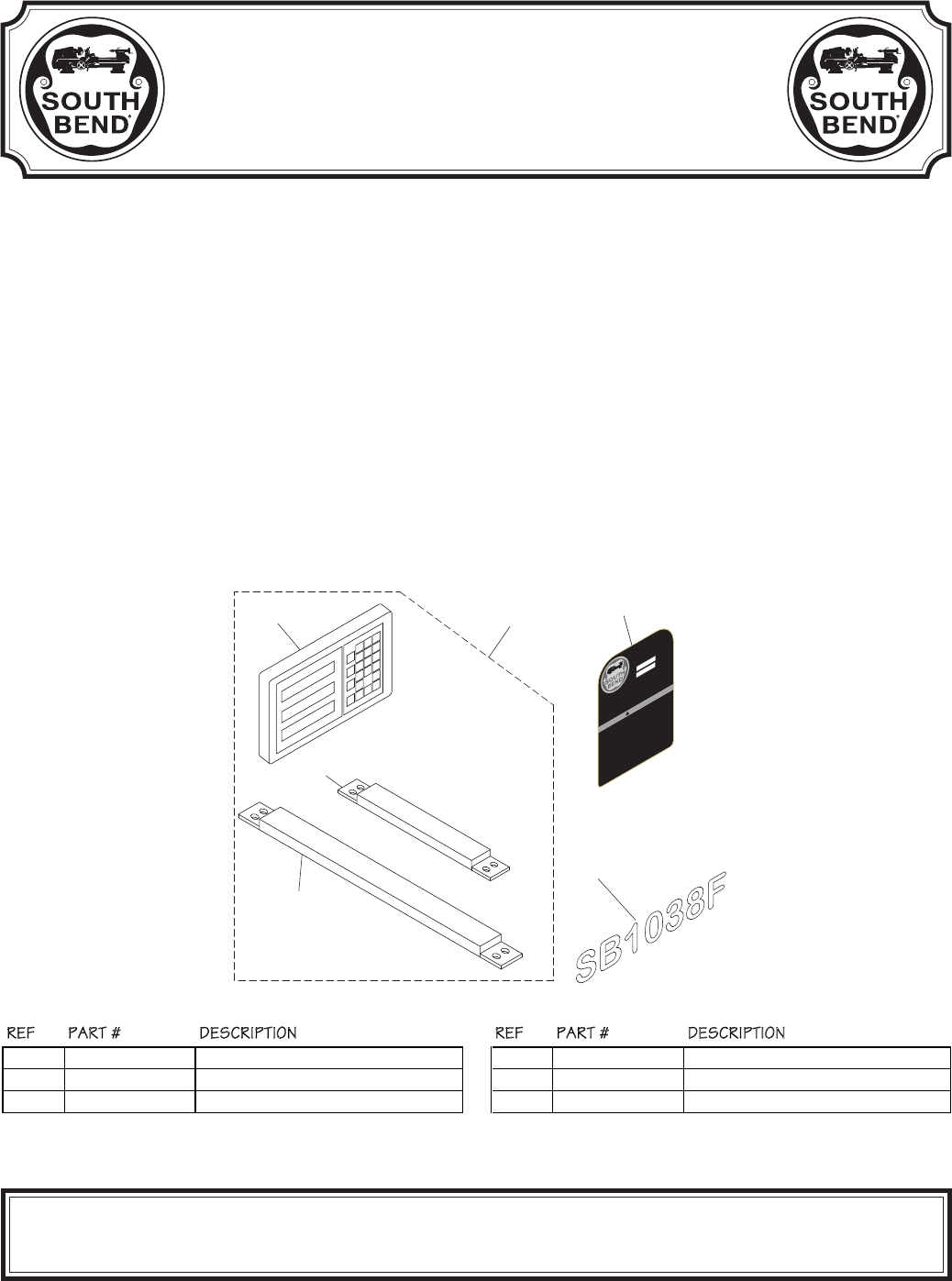 The Model SB1038F Lathe is the same machine as the Model SB1038 except for the following: