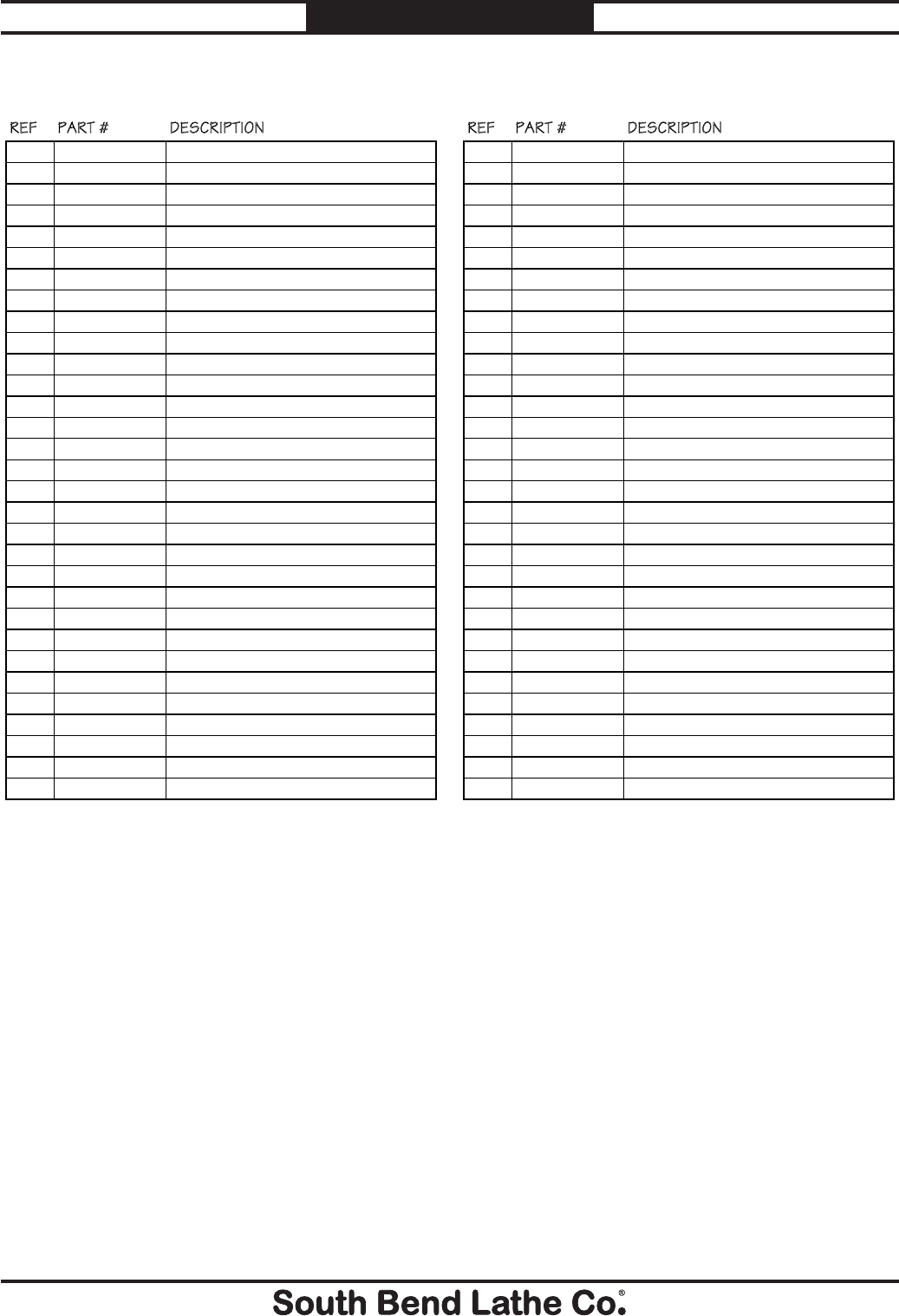 unreadable, REPLACE that label before using the machine again. Contact South Bend Lathe Co. at