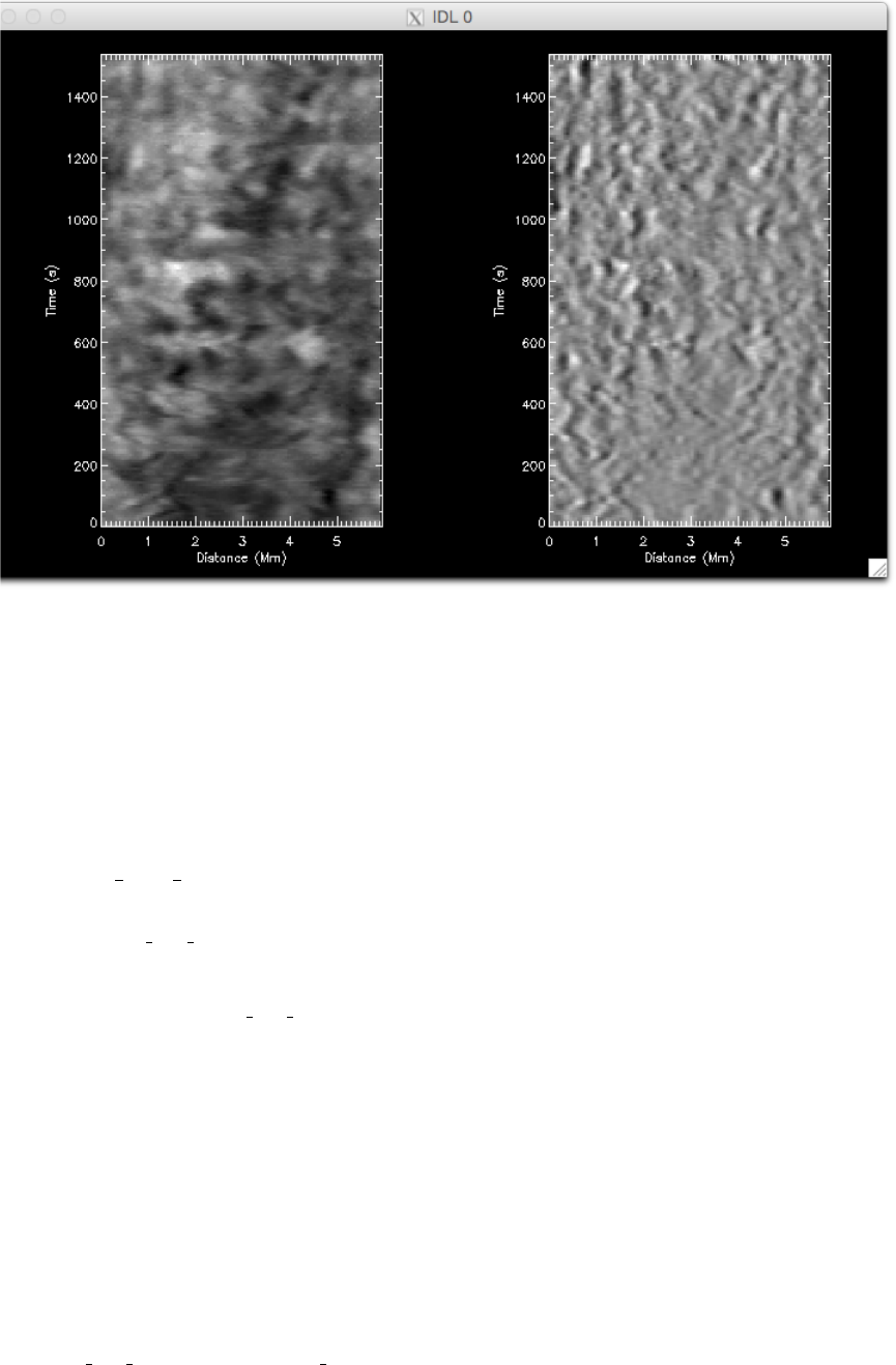 Figure 2: Time-distance-diagrams. The left hand panel shows the intensity time-distance diagram from the slit in Figure 1.