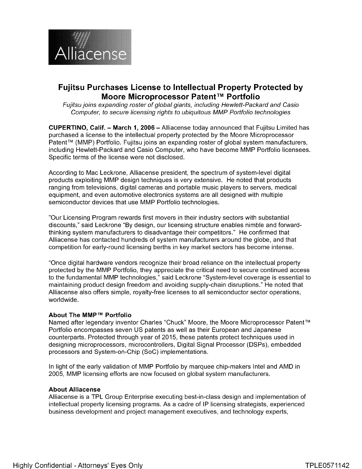 I have attached a Press Release announcing that Fujitsu has now joined Casio and