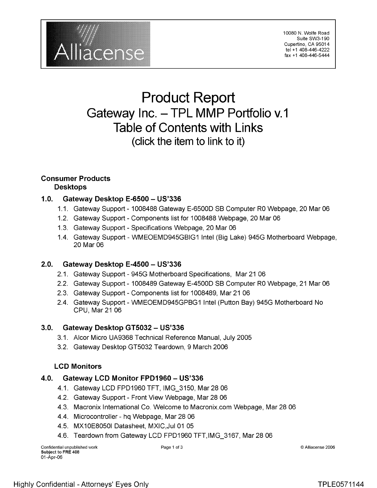 • Gateway products including Desktops (E-6500, E-4500, GT5032), LCD Monitors
