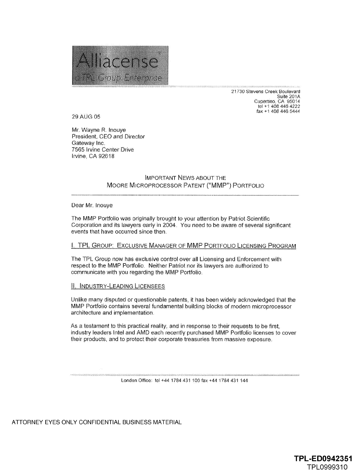 DEFENDANT TECHNOLOGY PROPERTIES LIMITED’S OBJECTIONS AND