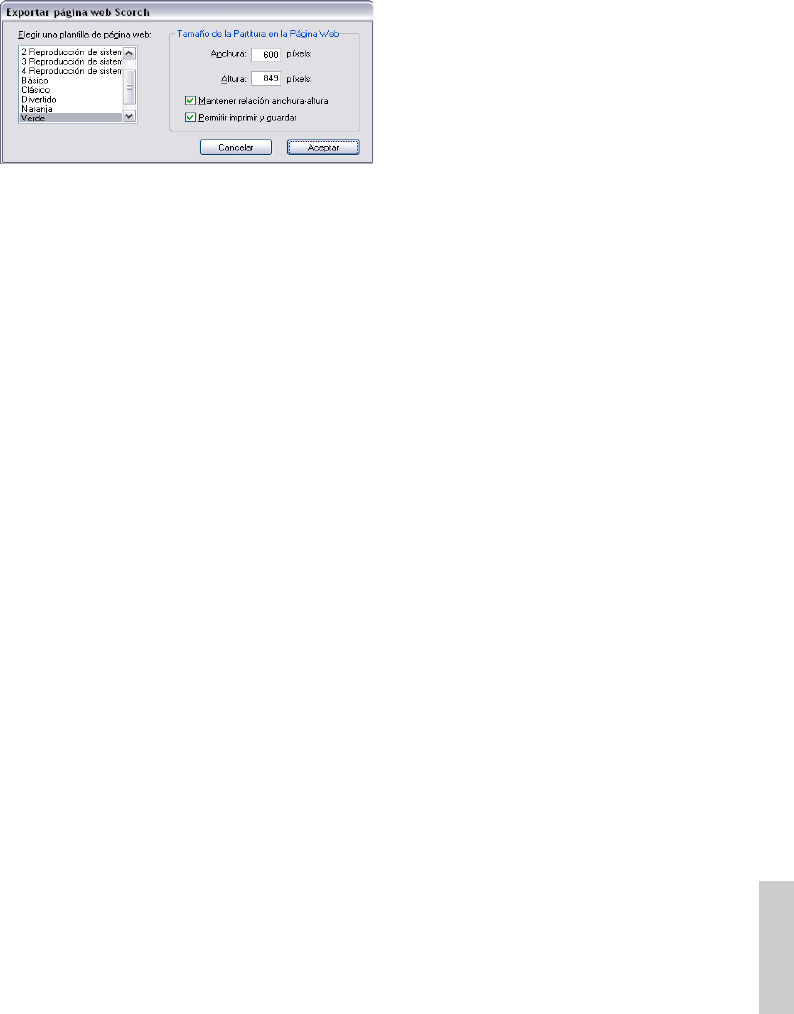 se describe en la documentación y de acuerdo con la Sección 2.1, publicar partituras en Internet o en soportes como DVD-ROM, CD-ROM,