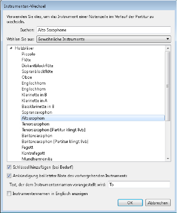 - Instrument ändern