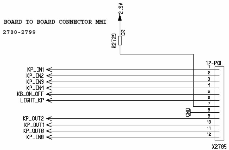 The lines KPOUT0 – KPOUT2 and KPIN0 – KPIN4 are connected with the SGOLDLITE.