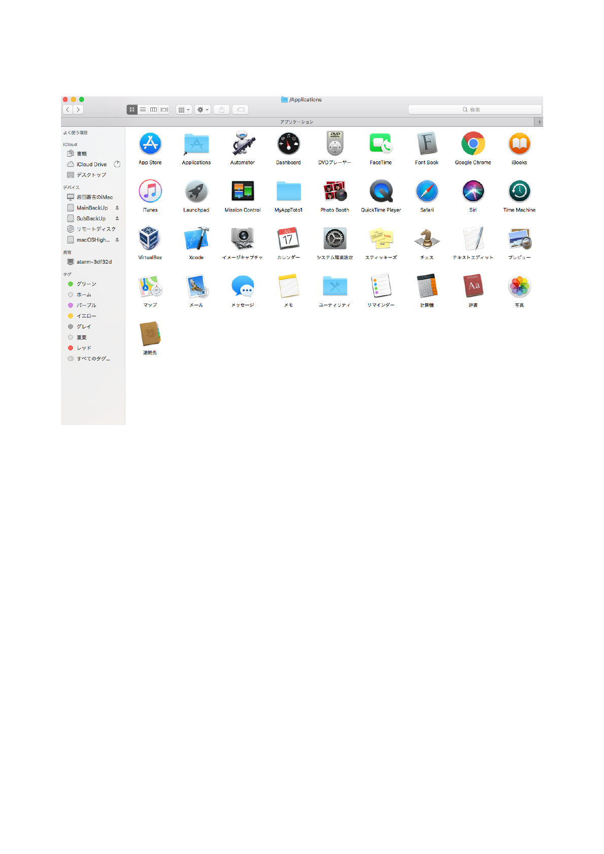 MyAppToto1.appができます。Finderのメーニューから移動→アプリケーションをクリックす