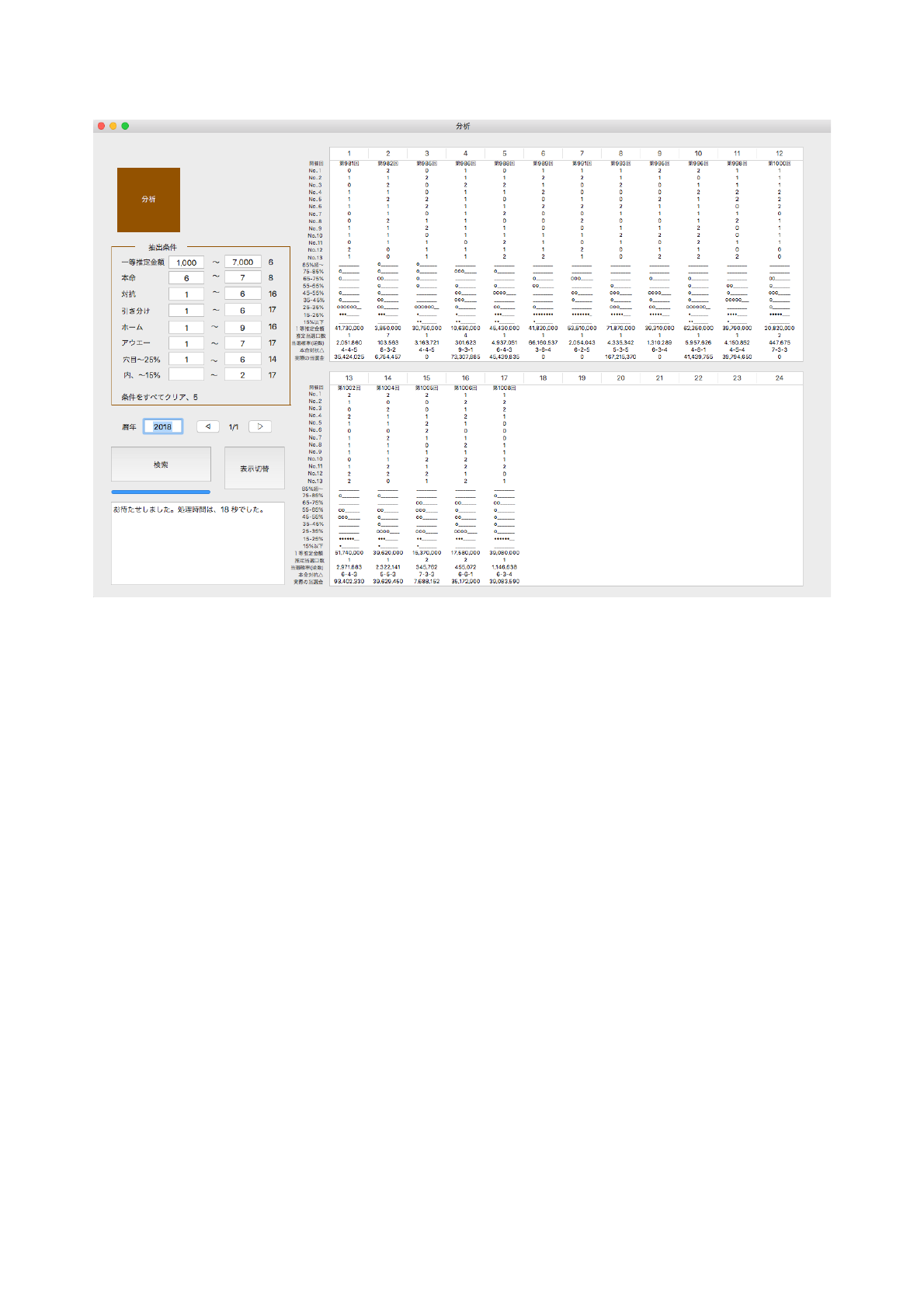 左上に対戦チームと最新の投票率を表示しました。左下は抽出条件です。普段、僕は、一等推定