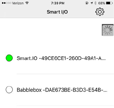 interaction. The app displays a spinning circle indicating that it is busy, and no end user