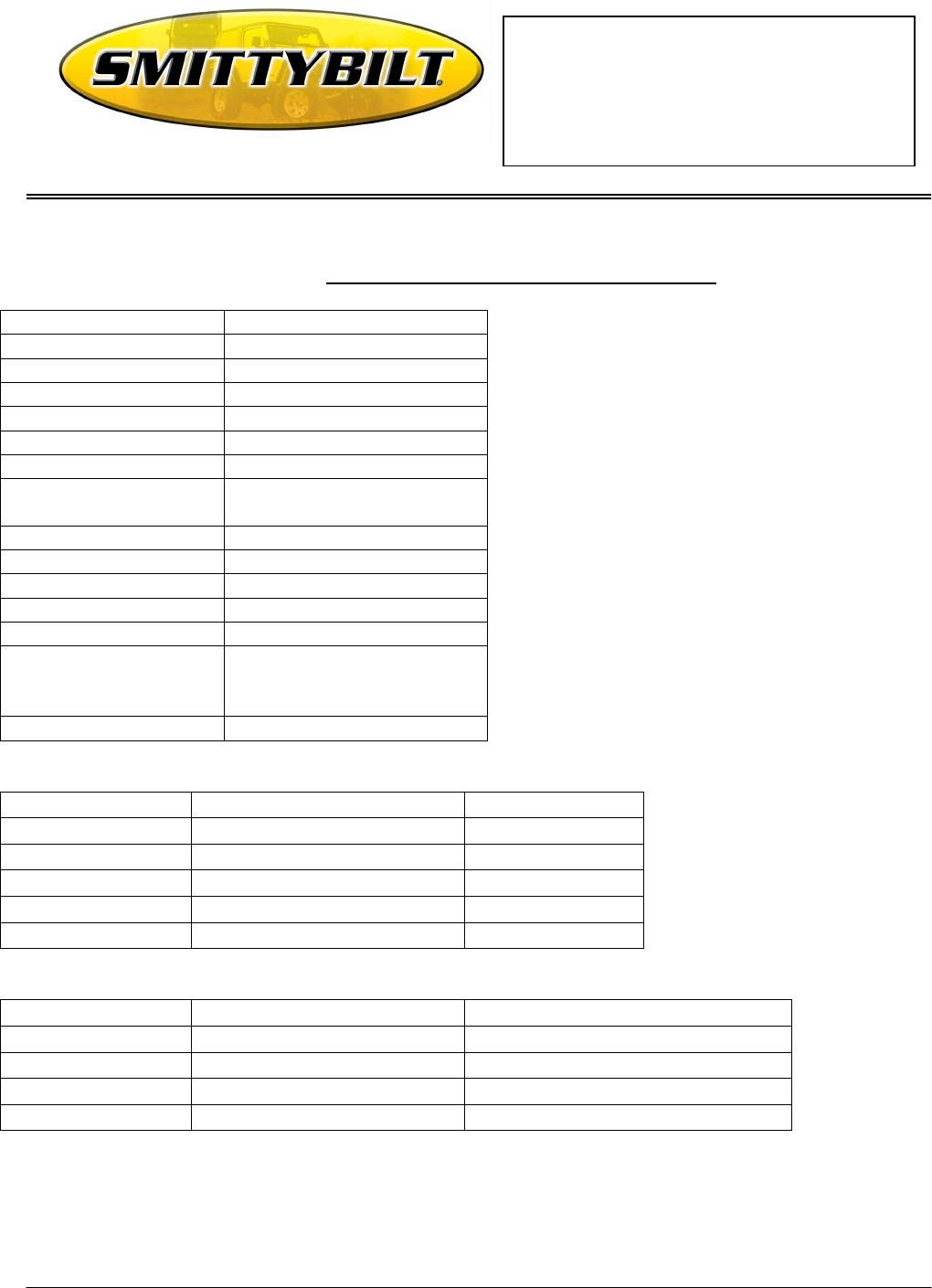 Please fill out this warranty form and return to Smittybilt at the address below. Note: Keep a copy