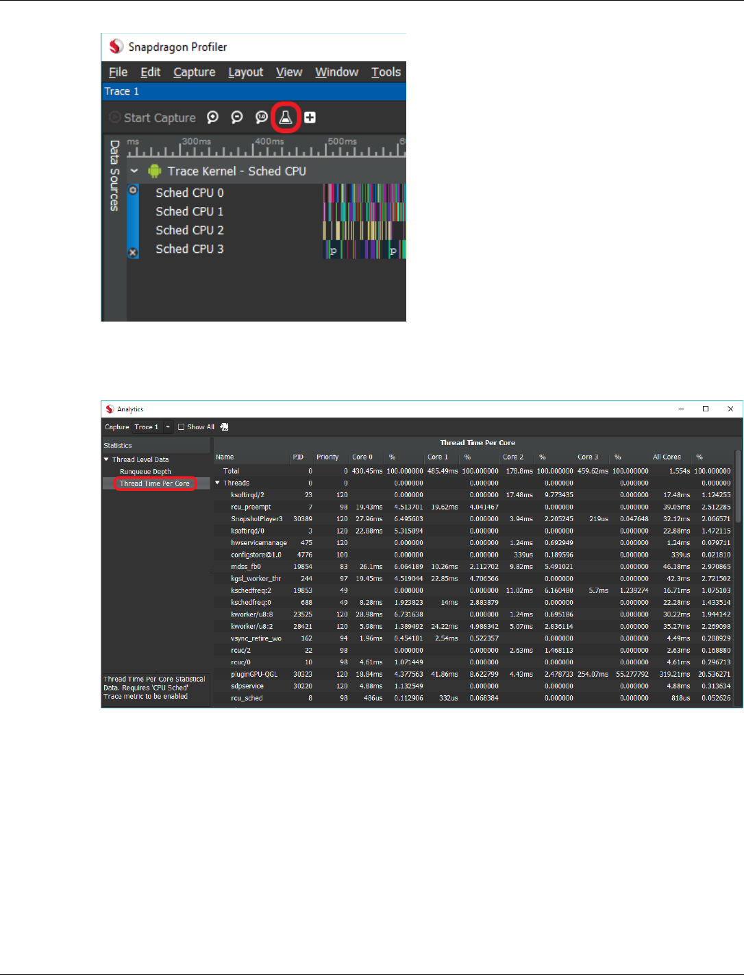 7. Click Stop Capture to stop the capture after a few seconds. Snapdragon Profiler processes