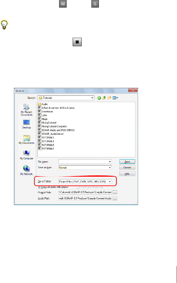 例如:找到名为 SONAR_AudioDemo.cwb 的工程。