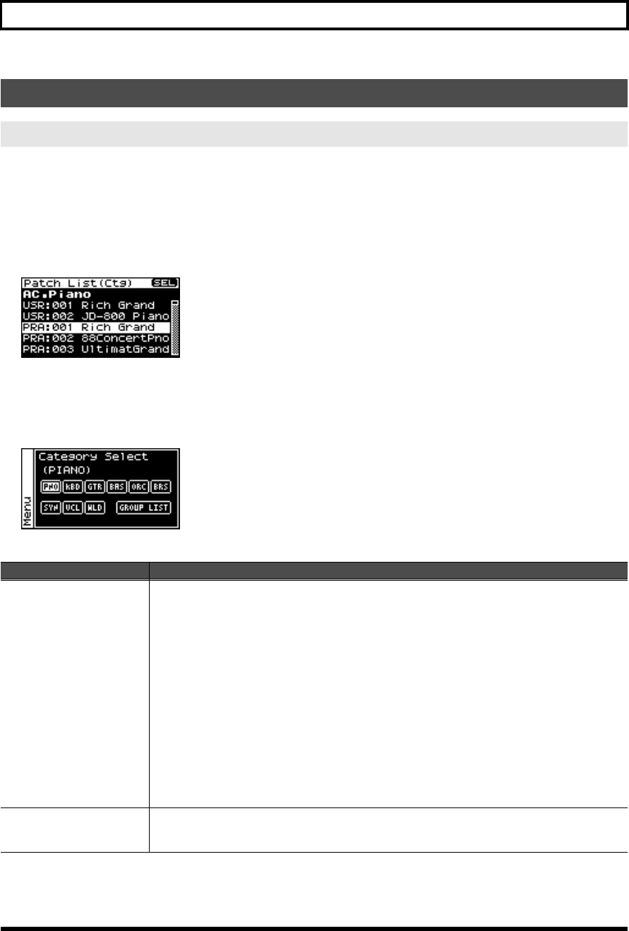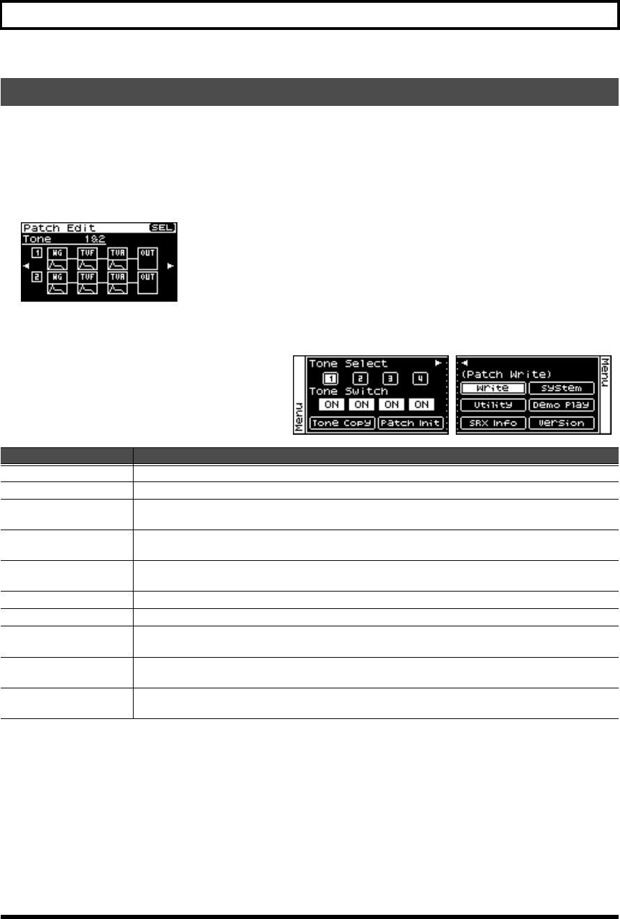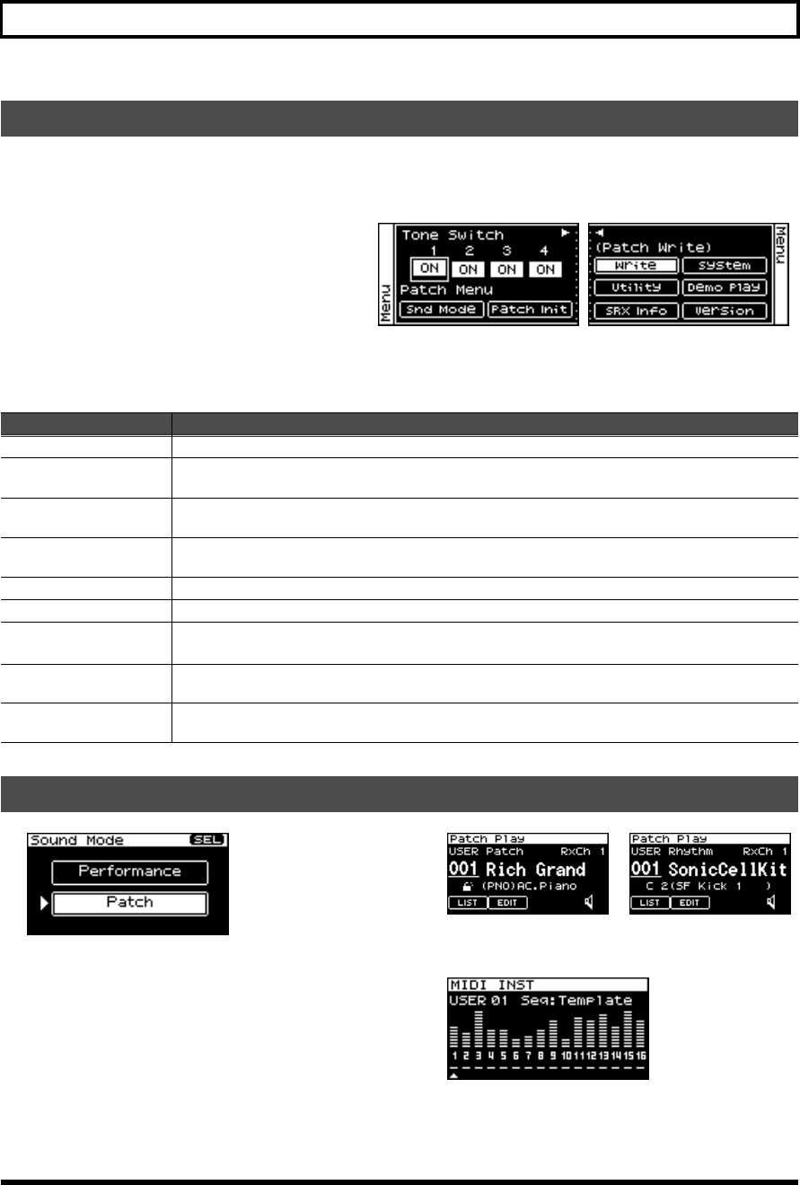 - Viewing the menu screen (Patch Menu screen)