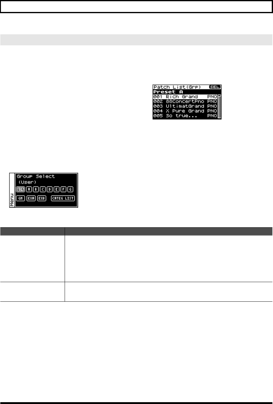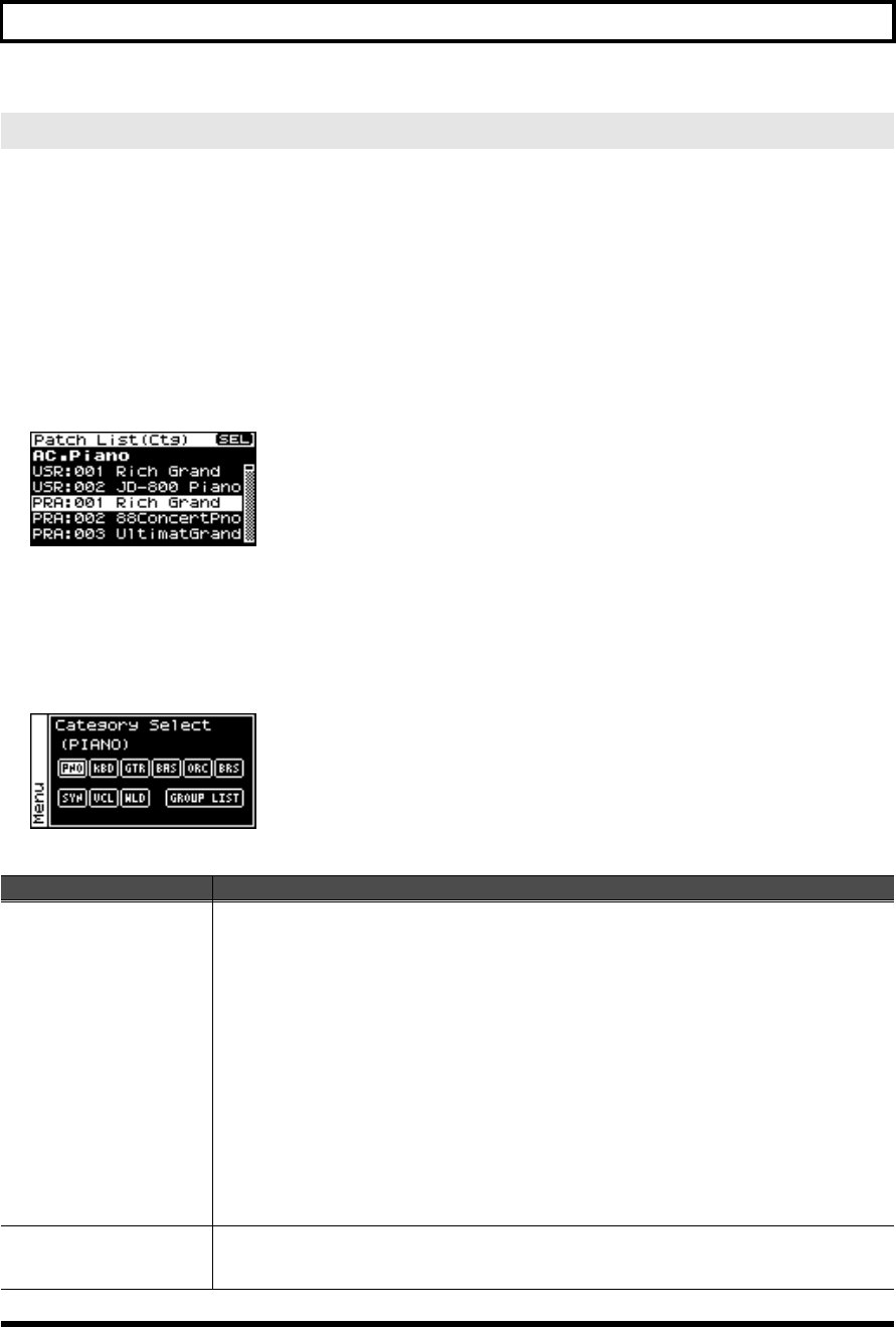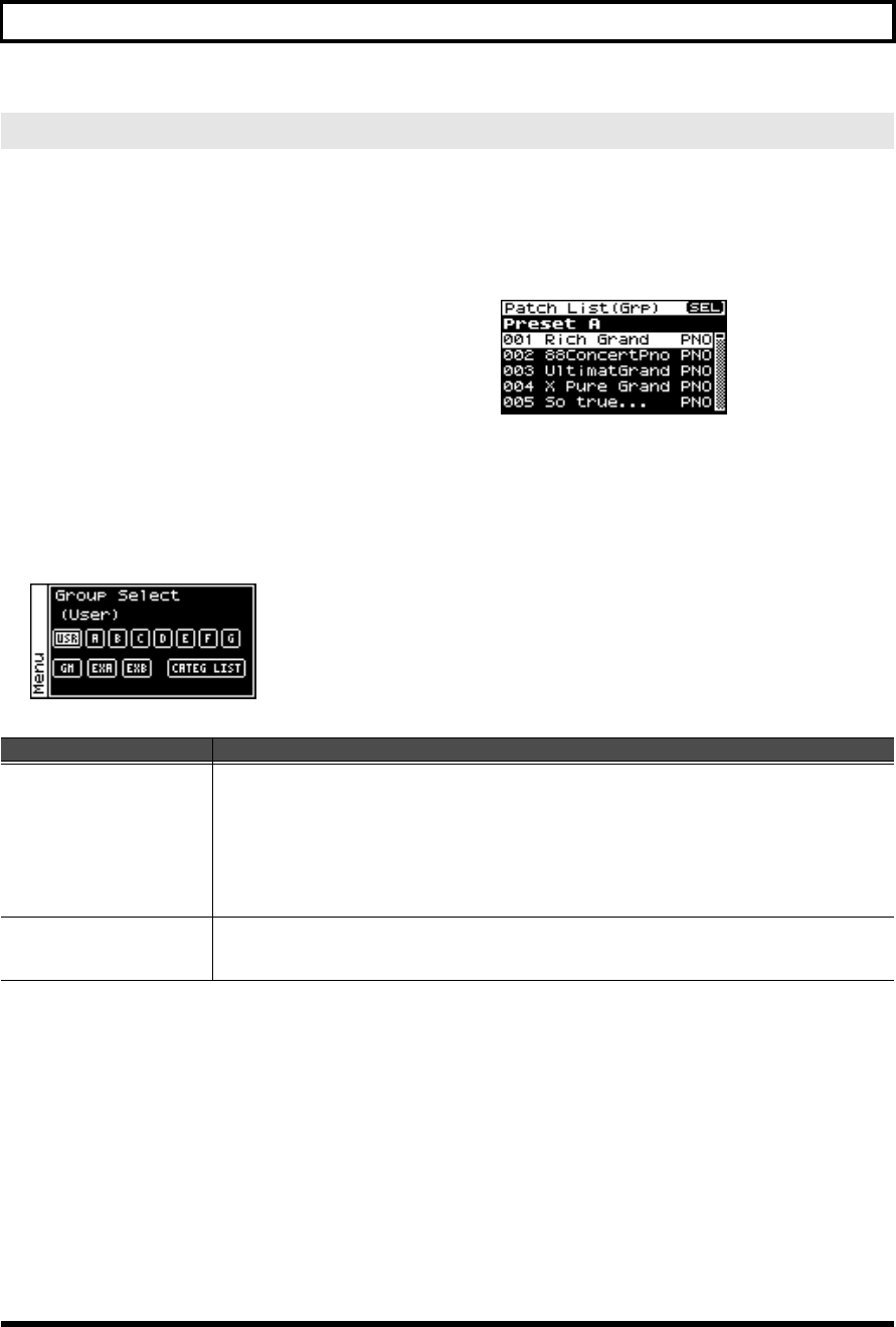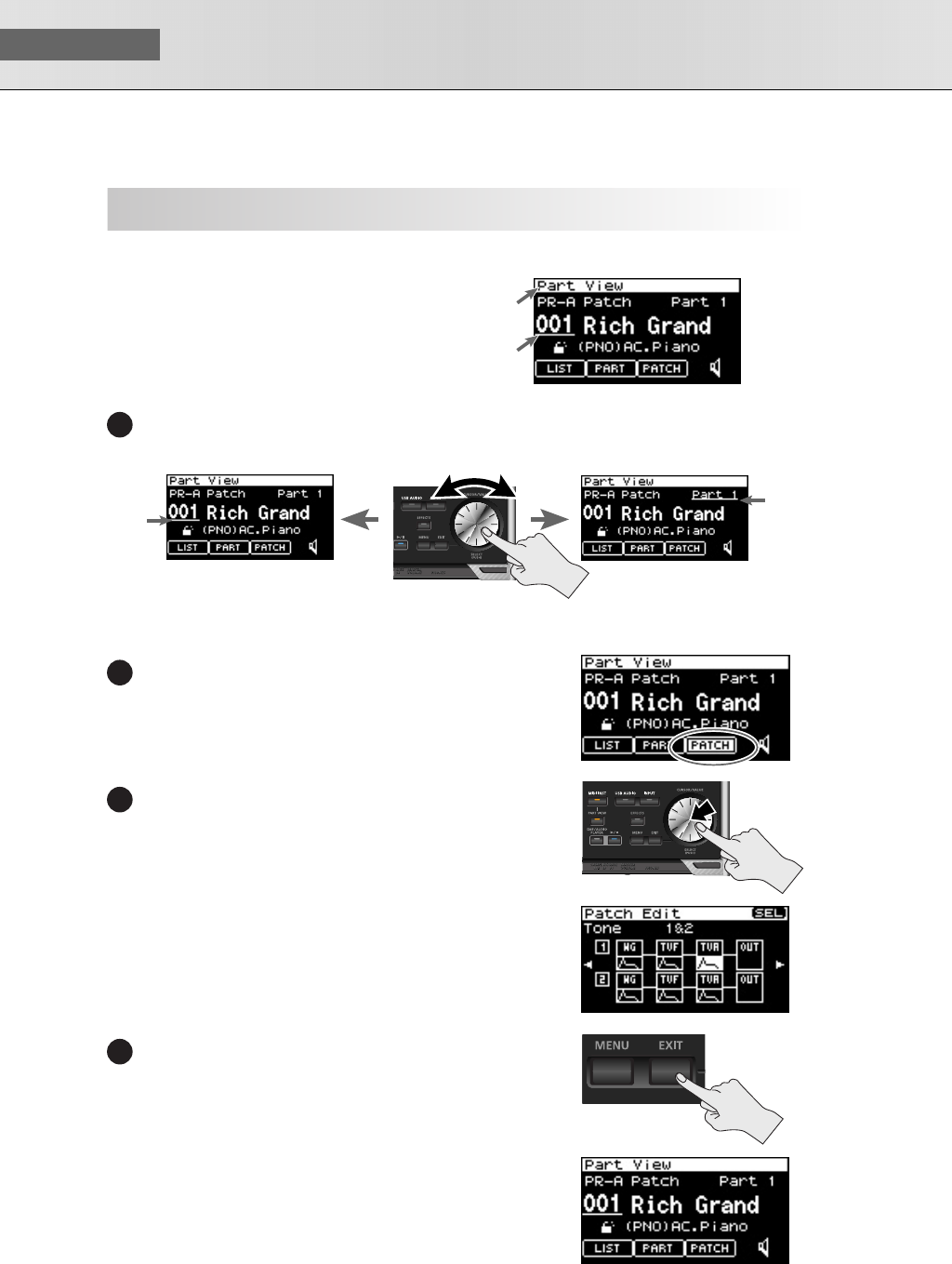 - Viewing the menu screen (Patch Menu screen)