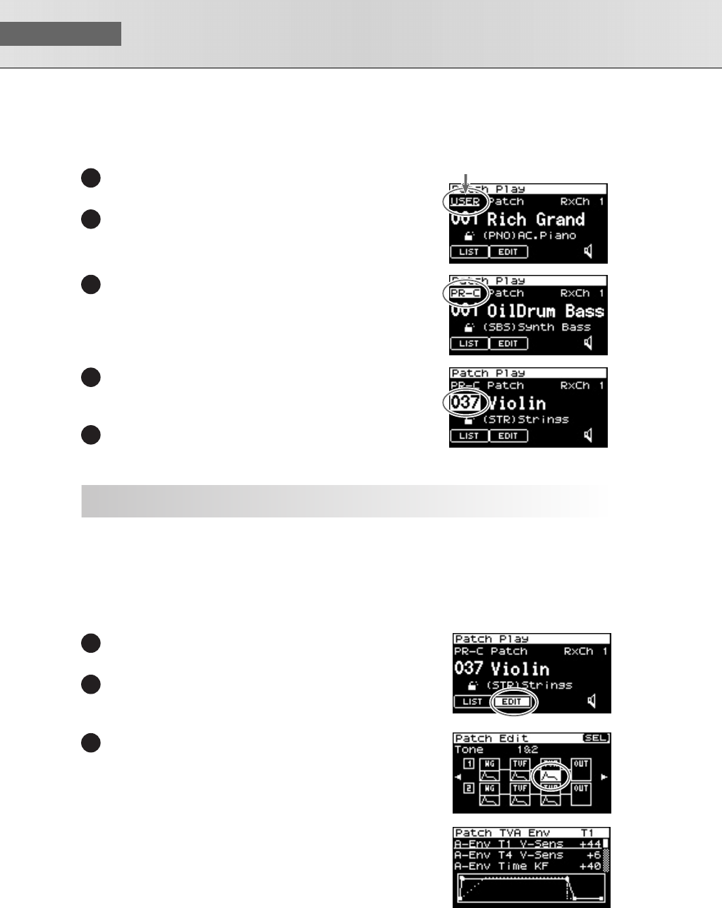 - Editing patches (Patch Edit screen)