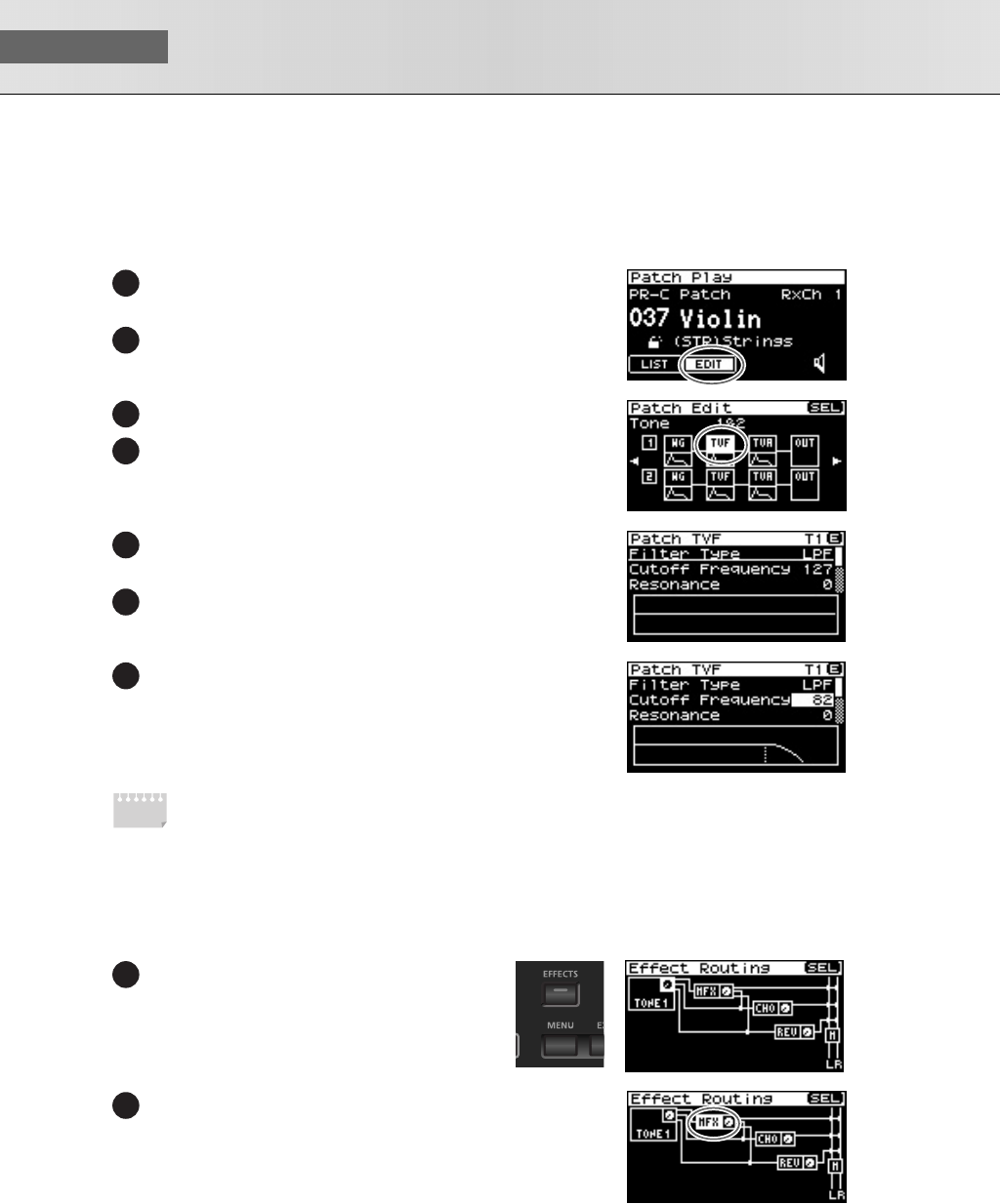 - Editing the effects (Patch/Rhythm Set)