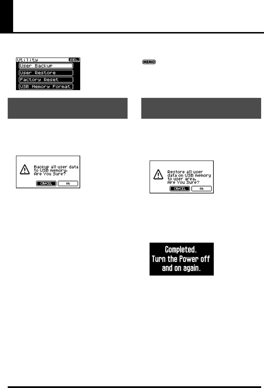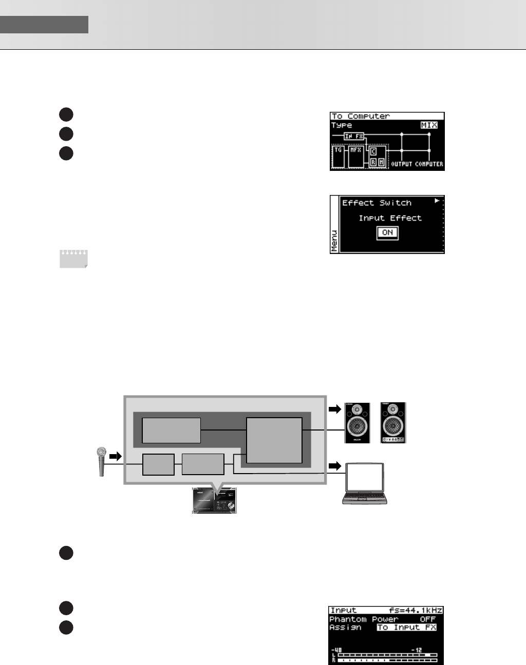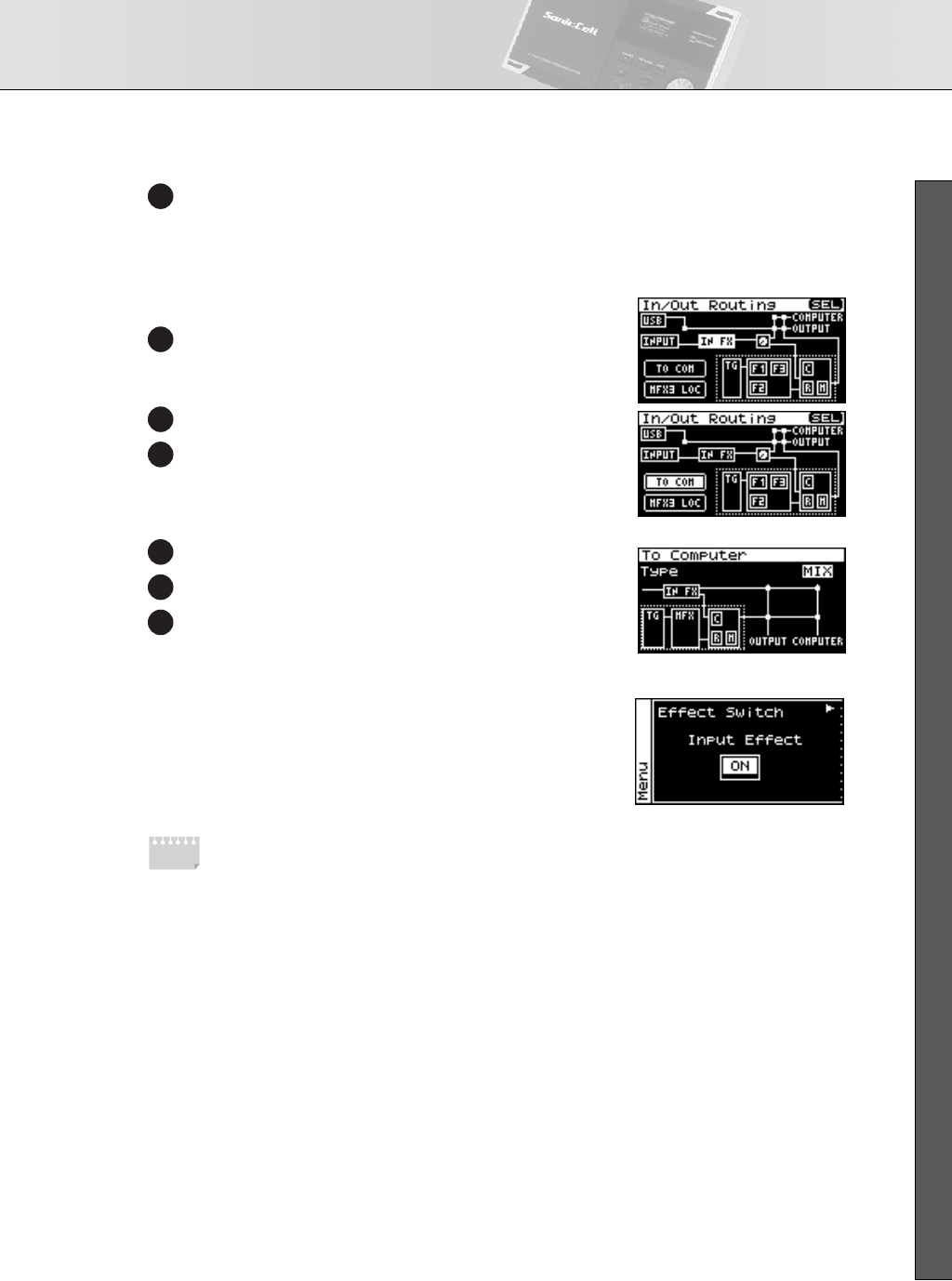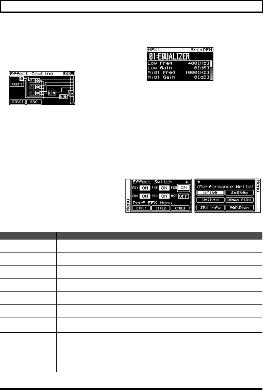 - Editing the multi-effects related settings (MFX1–3/MFX1–3 Output screens)