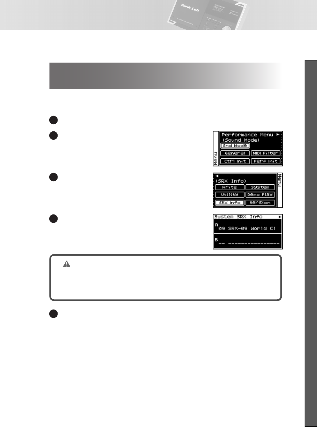 - Viewing information about SonicCell (System SRX Info/System Version Info screens)