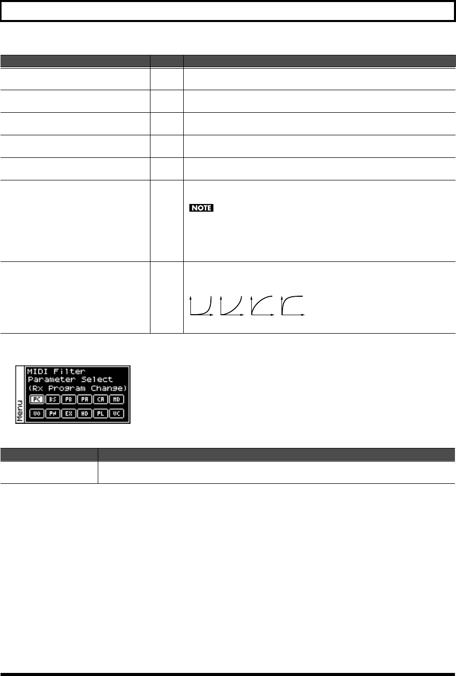 - MIDI-related settings (Perform MIDI Filter screen)