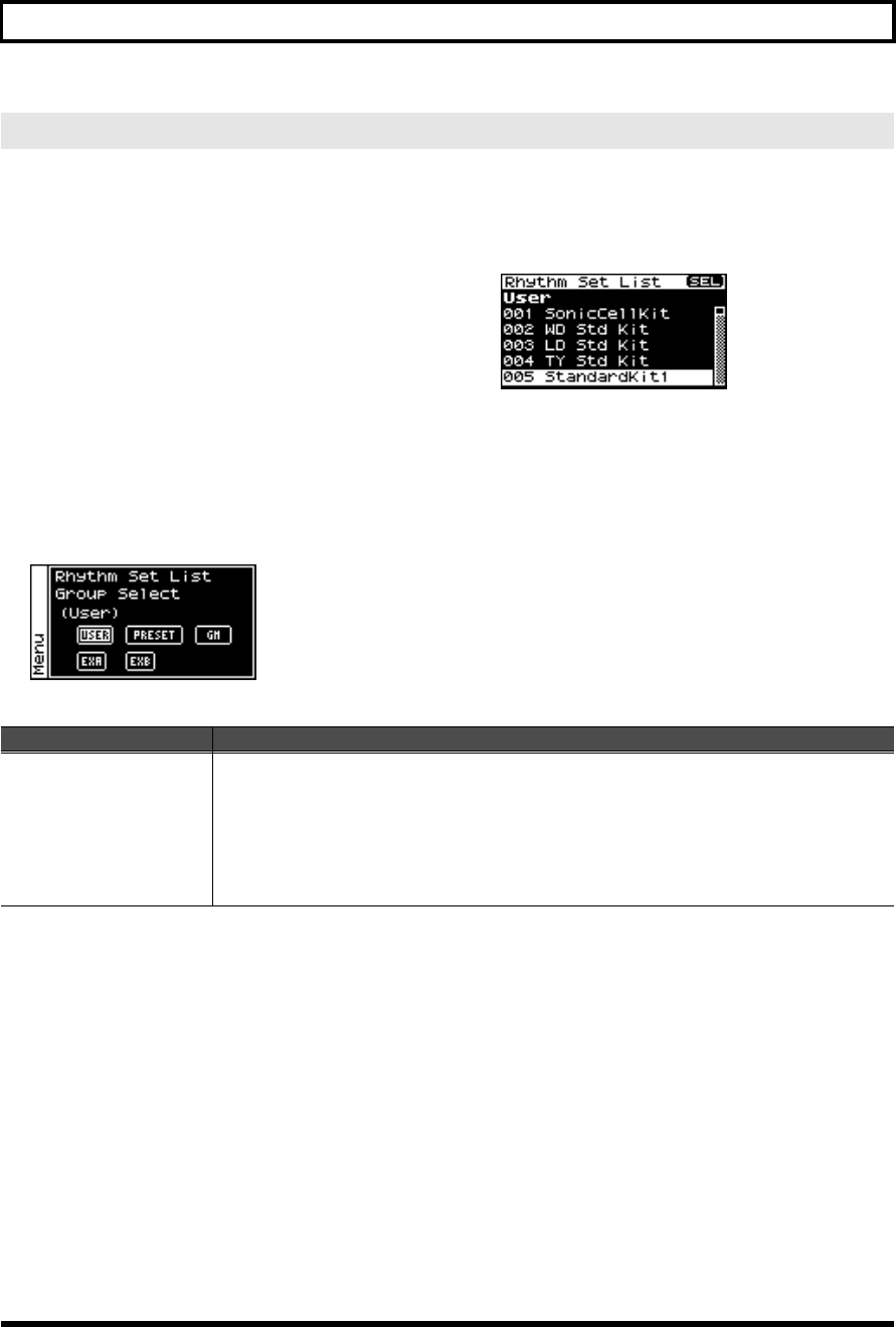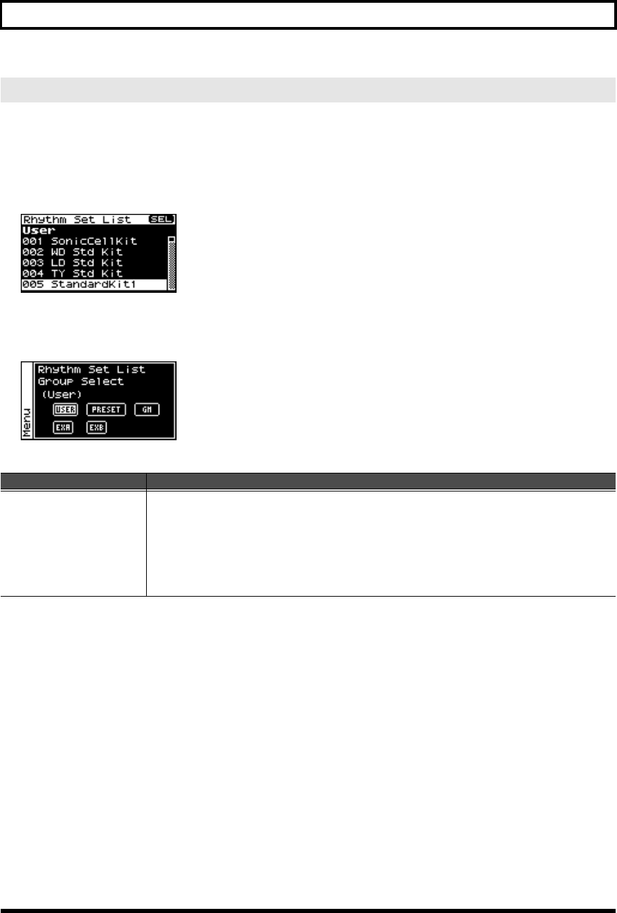 - Output-related settings for the rhythm set and rhythm tones (Rhythm Output screen)