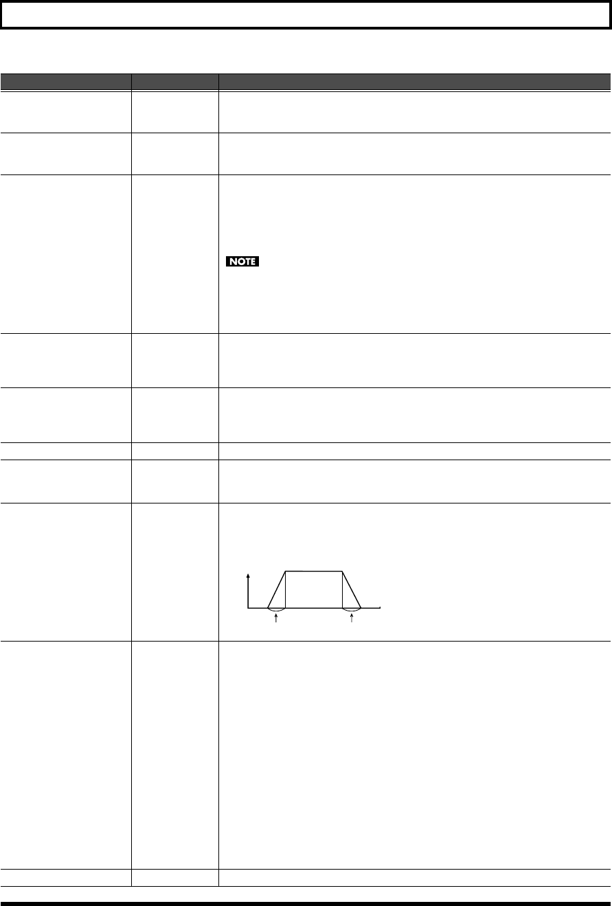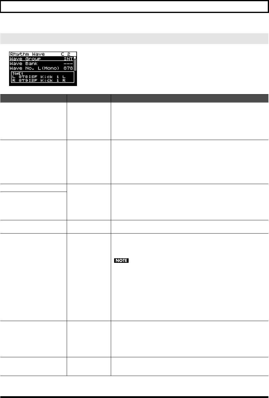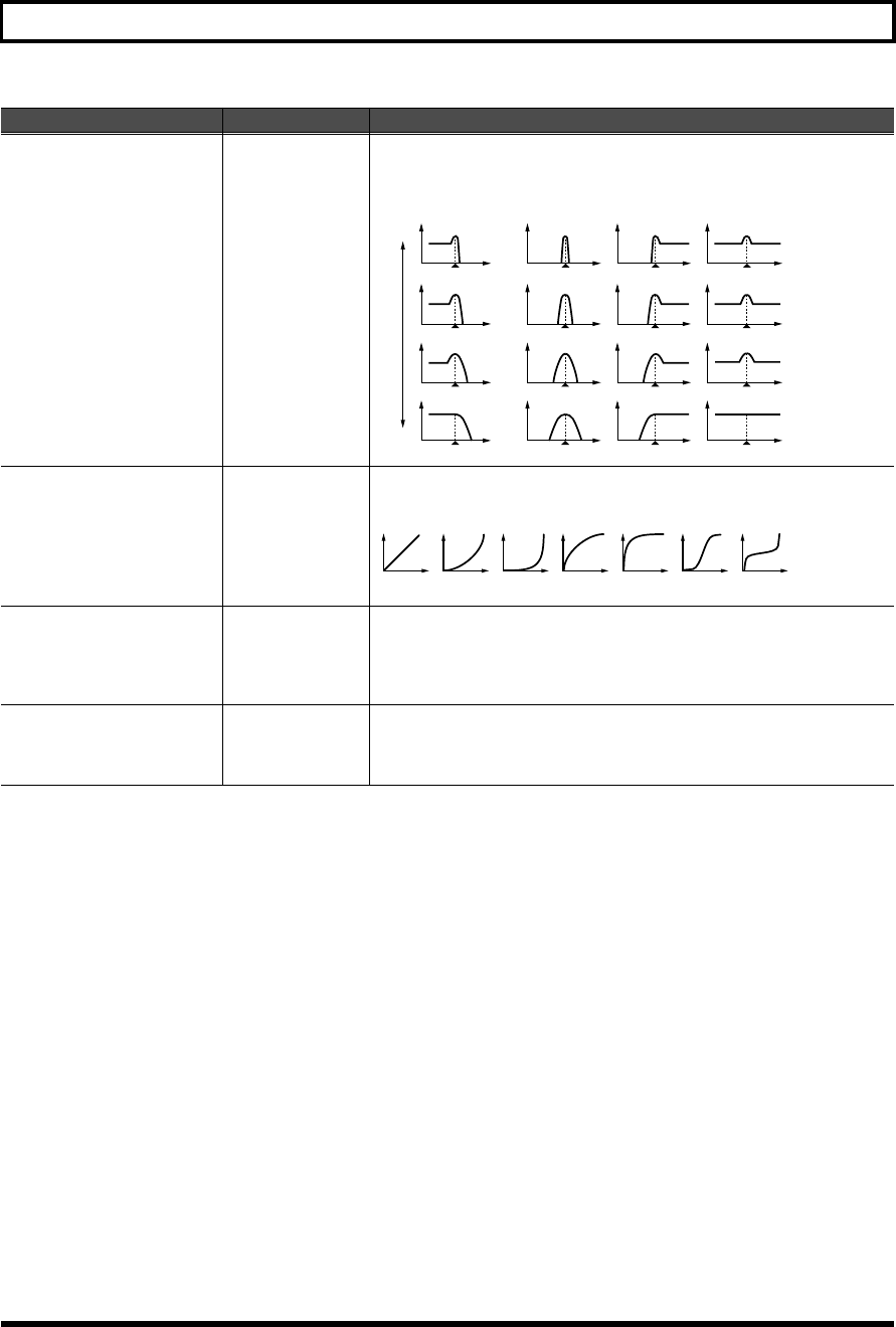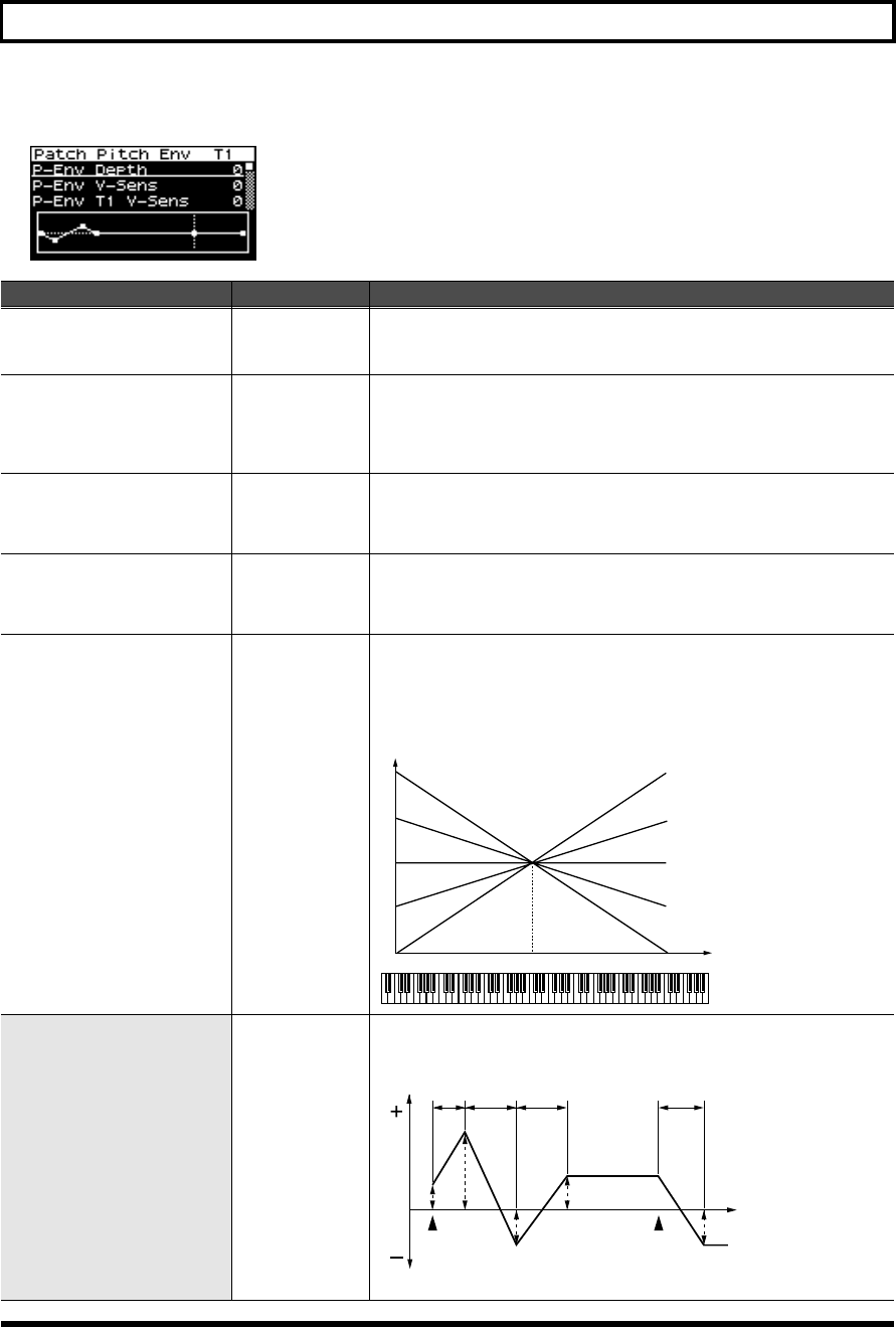 - Waveform-related settings (Patch WG/Patch Pitch Env screen)