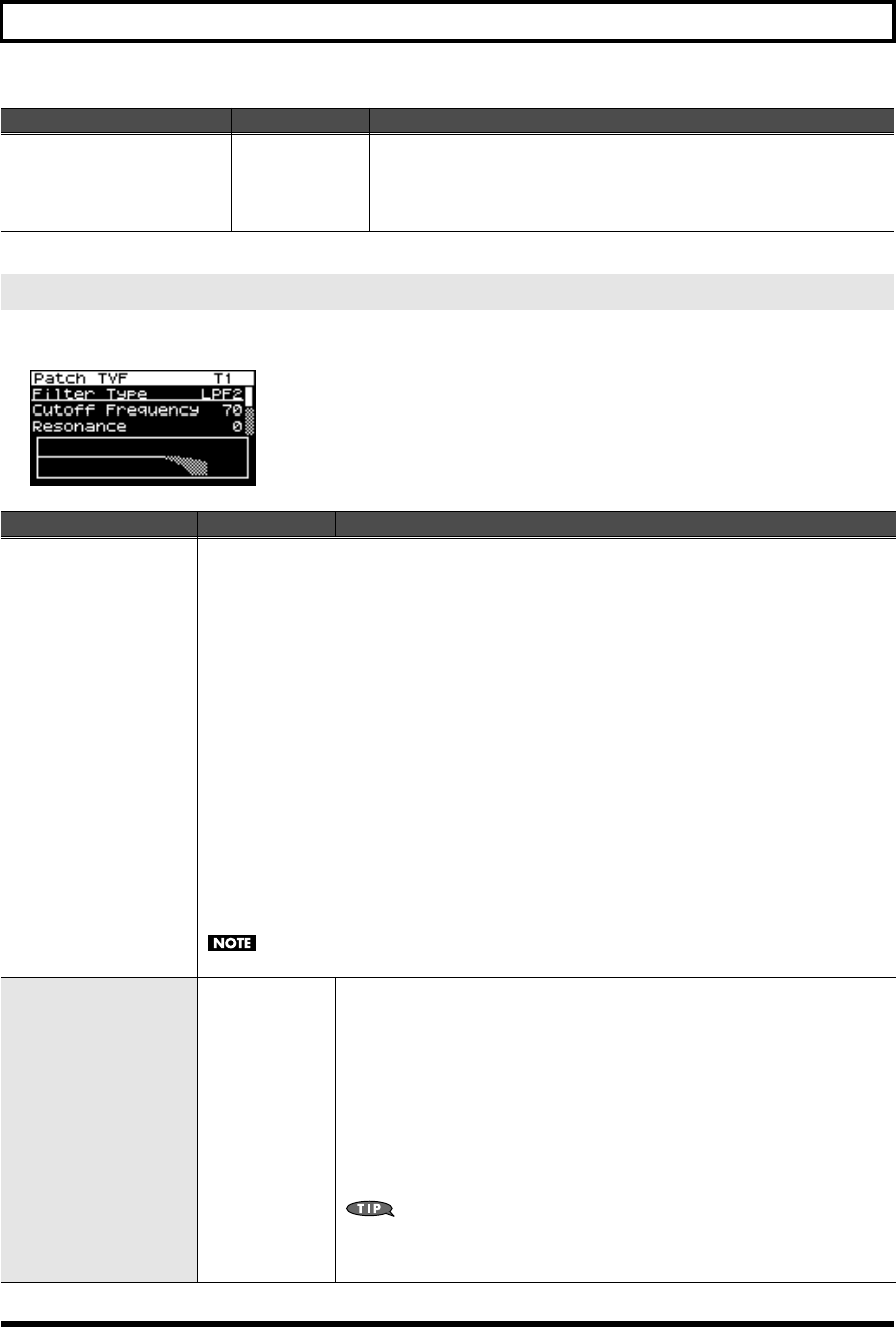 - TVF settings (Patch TVF/Patch TVF Env screen)