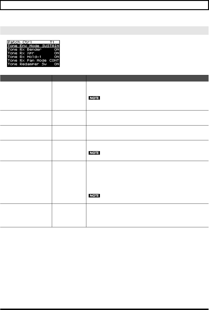 - Controller-related settings (Patch Ctrl screen)