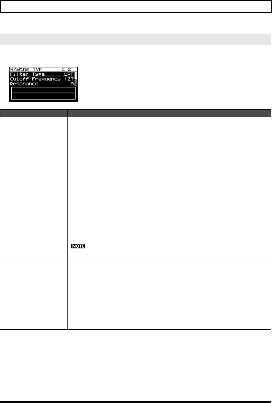 - TVF settings (Rhythm TVF/Rhythm TVF Env screen)
