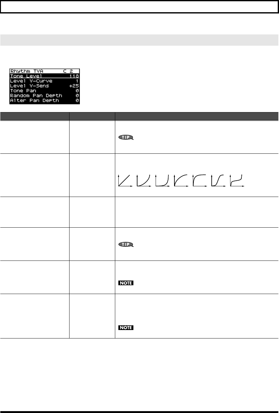 - TVA settings (Rhythm TVA/Rhythm TVA Env screen)