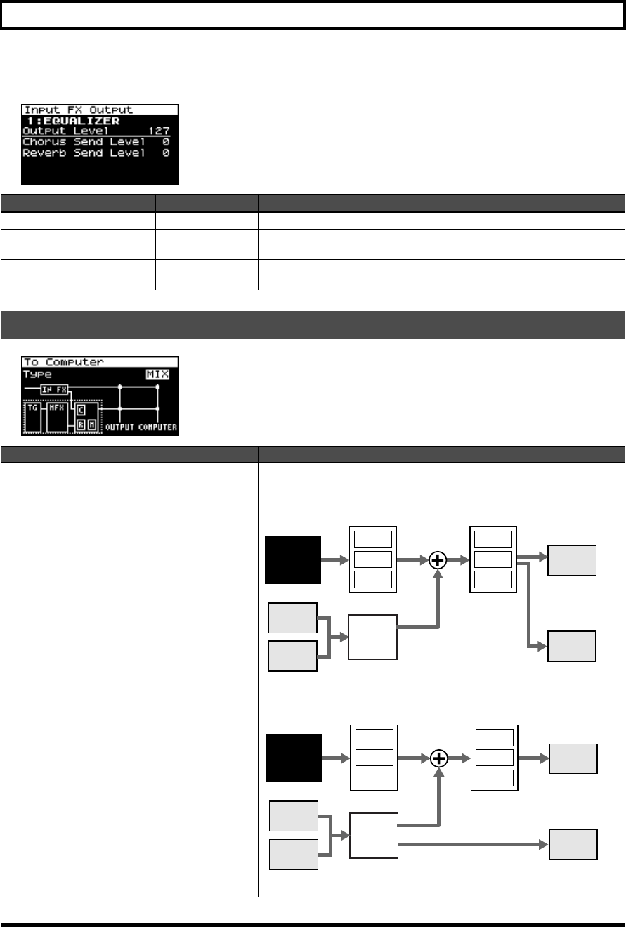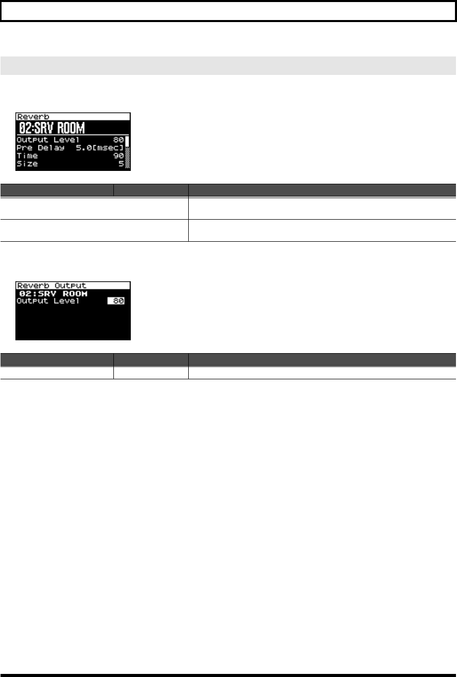 - Reverb-related settings (Reverb/Reverb Output screen)