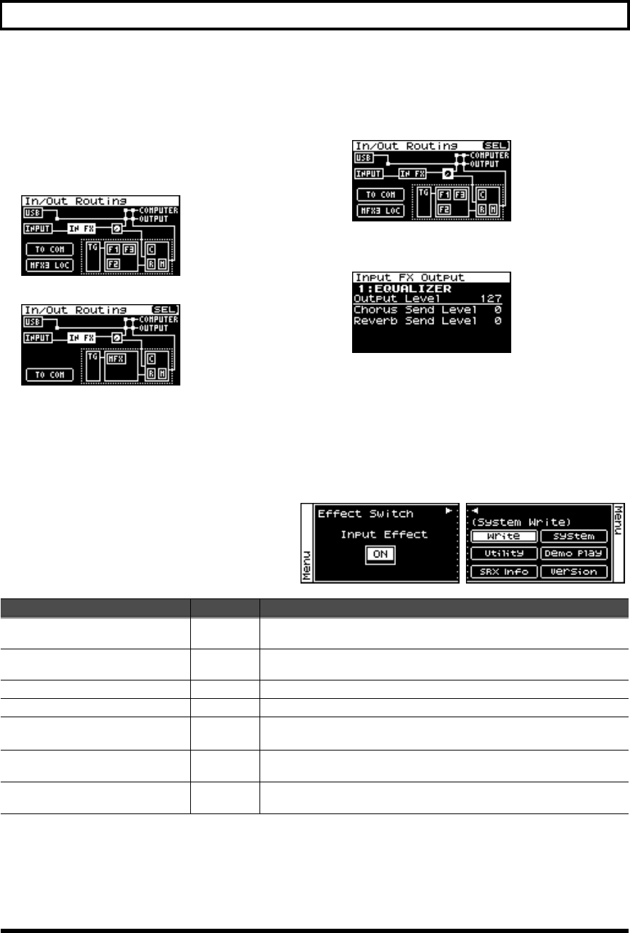 - Selecting the item to edit (Effect Routing screen)
