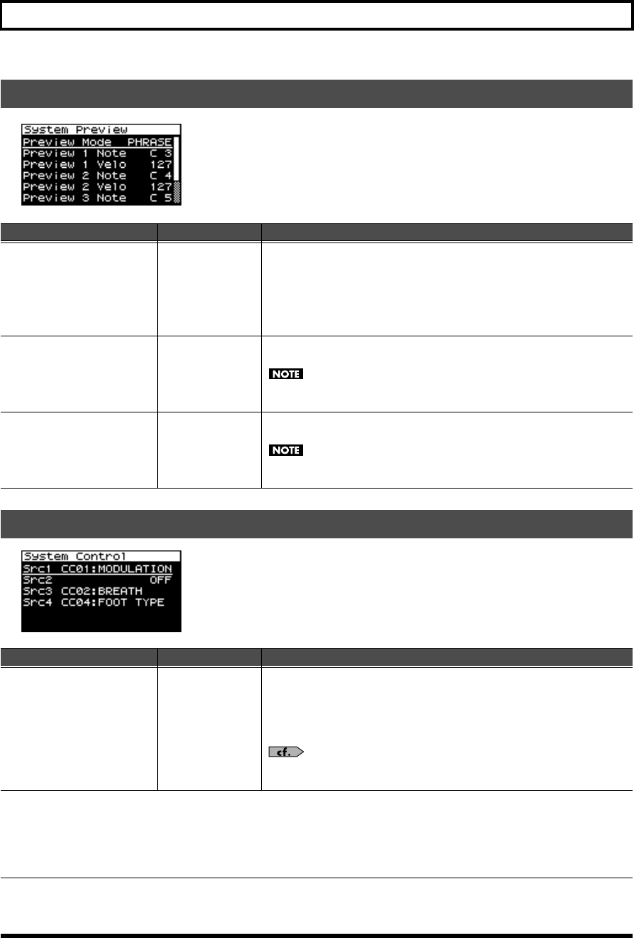 - Settings for the Preview function (System Preview screen)