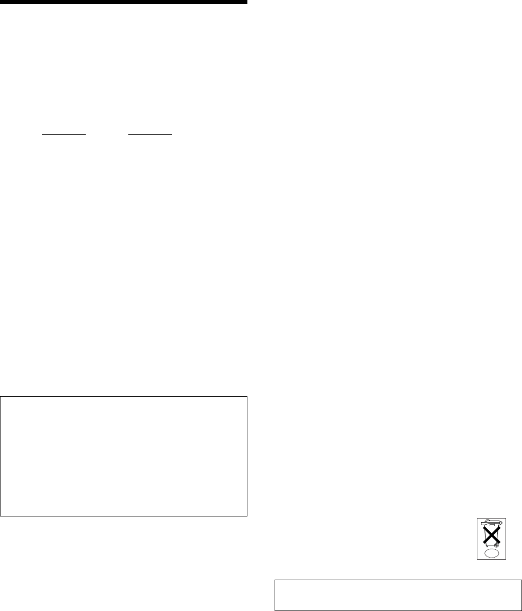upon your Sony dealer regarding this product.