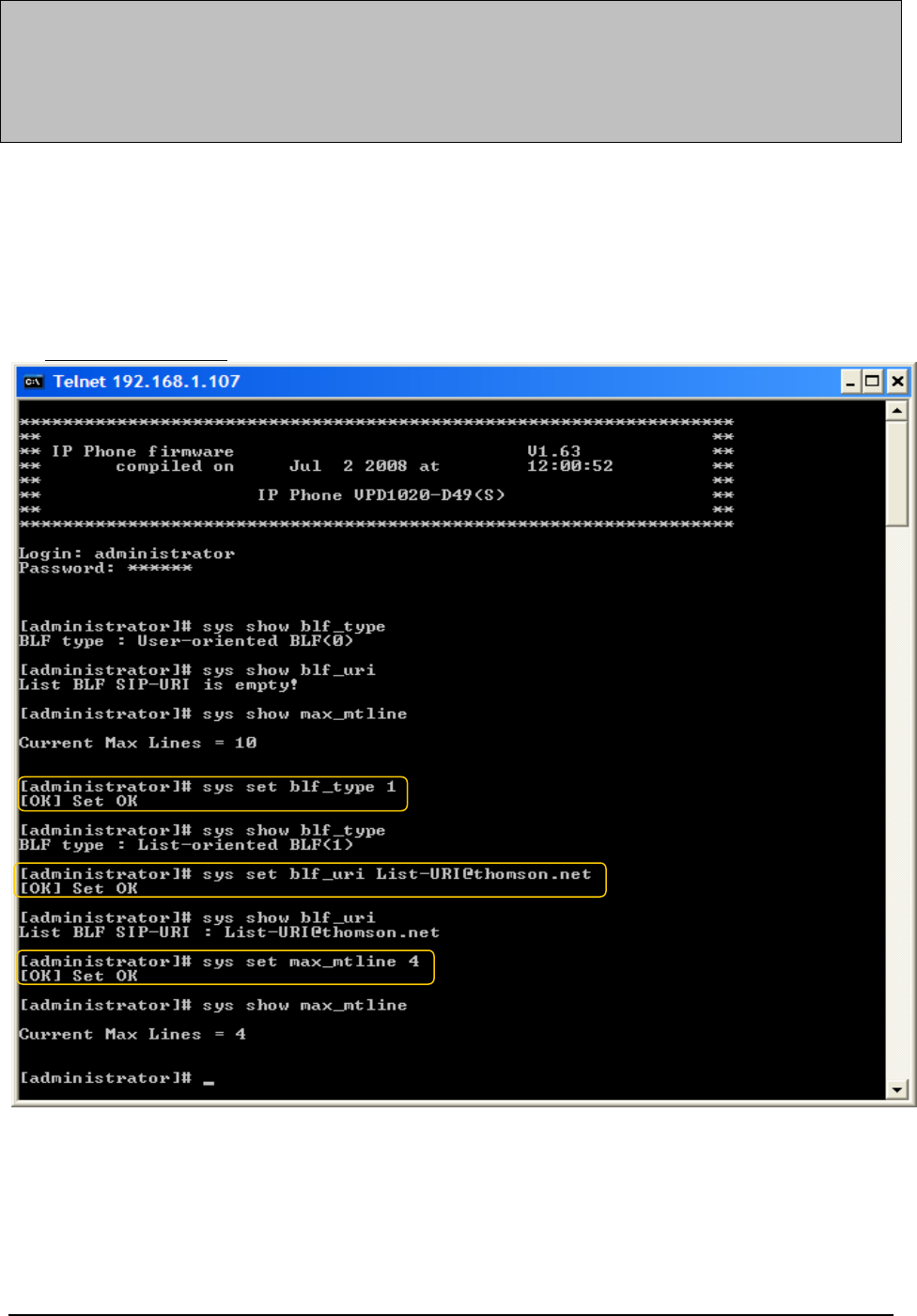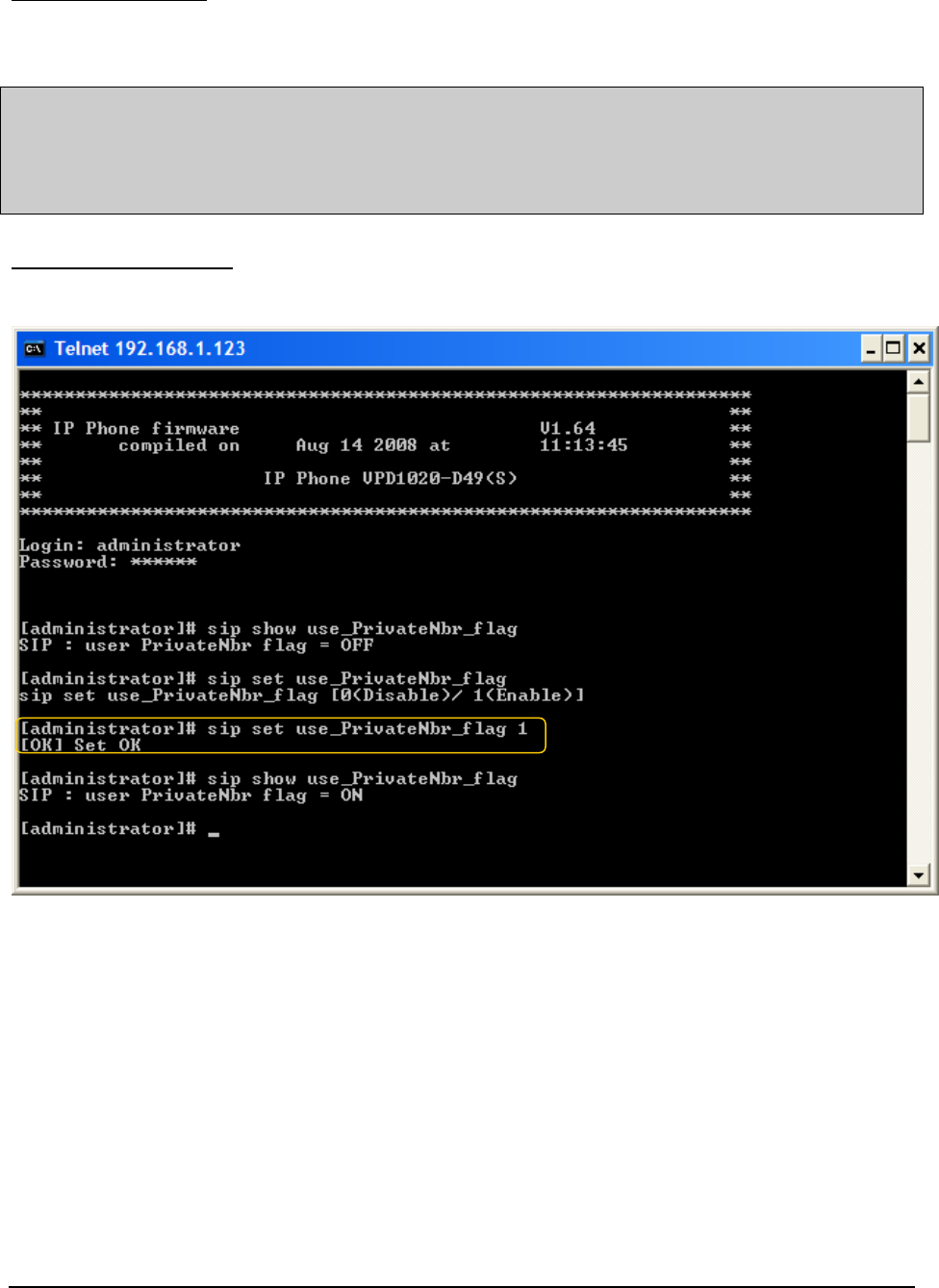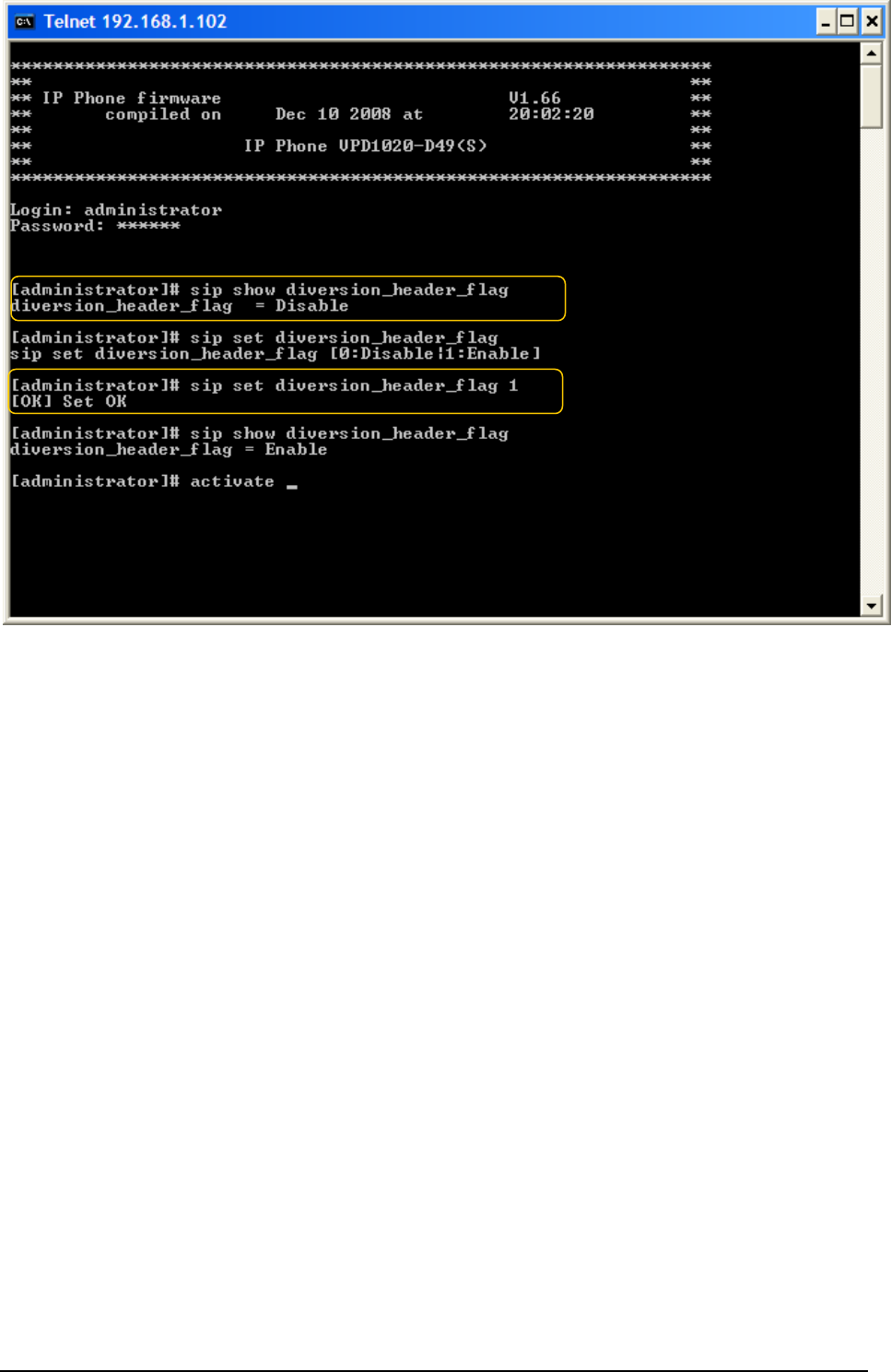 TelnetID=administrator
