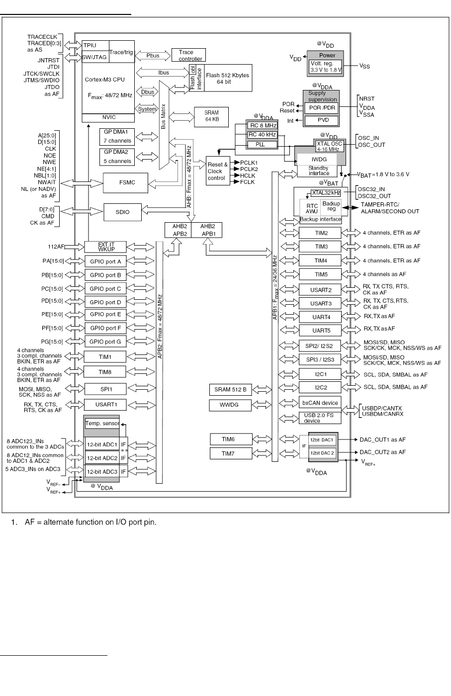 –Supported peripherals: timers, ADCs, DAC, SDIO, I2Ss, SPIs, I2Cs and